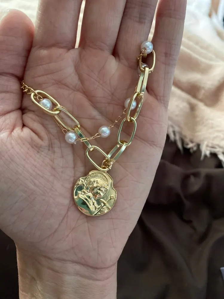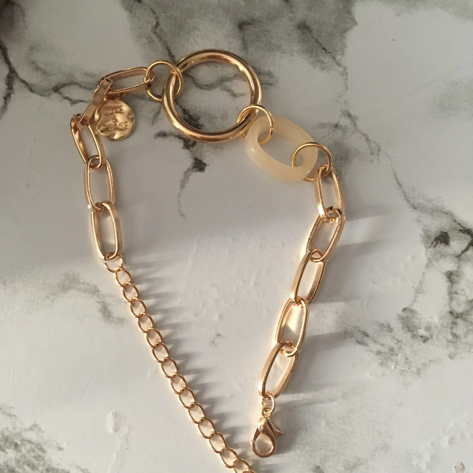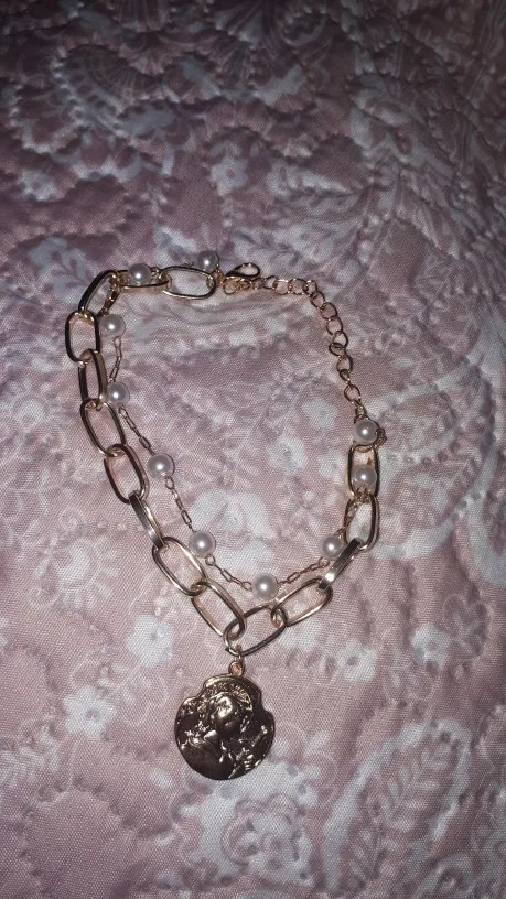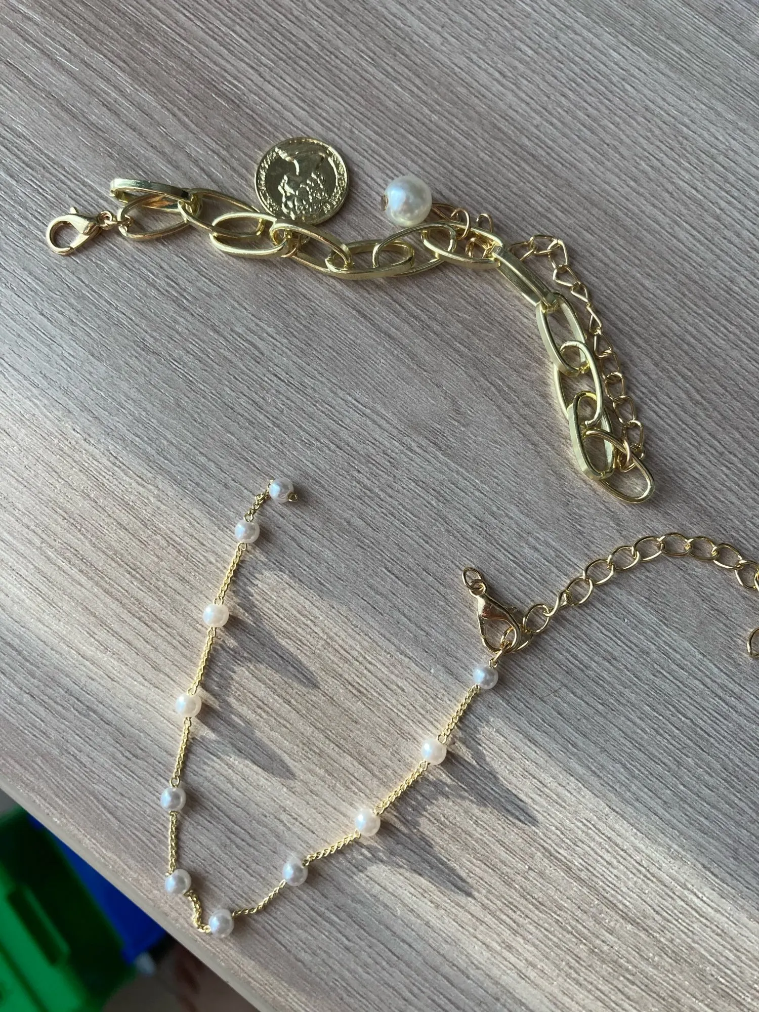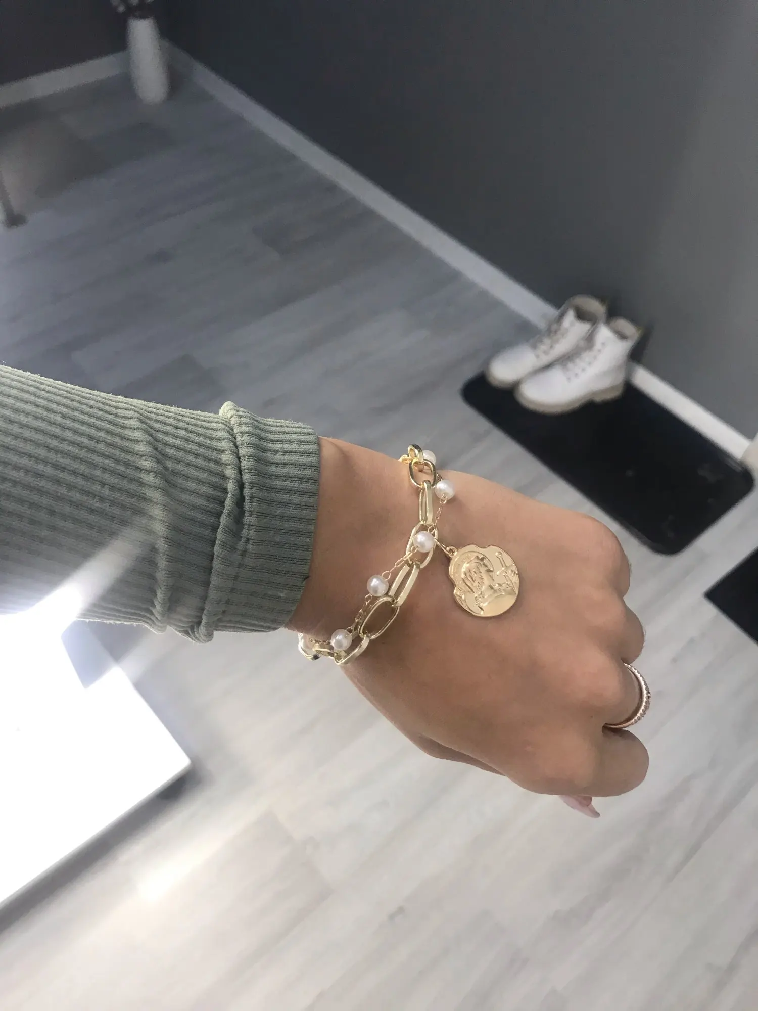 Понравился, мило смотрится, но только браслет с цепью идёт раздельный с браслетом из белых бусин.