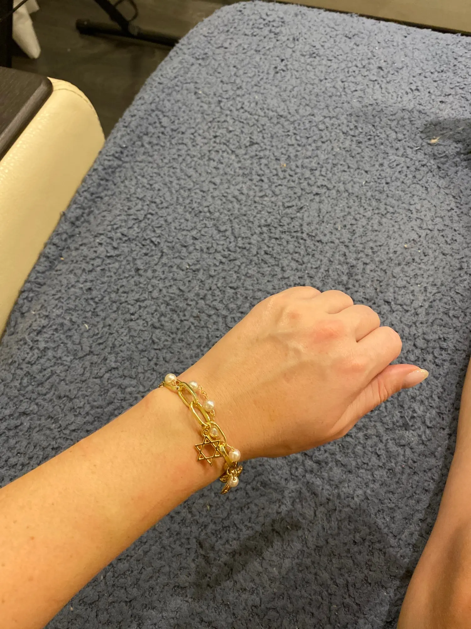 Браслет хороший, единственное, не открывается замок. Но звёзды снимать не буду, потому что на руку он надевается.