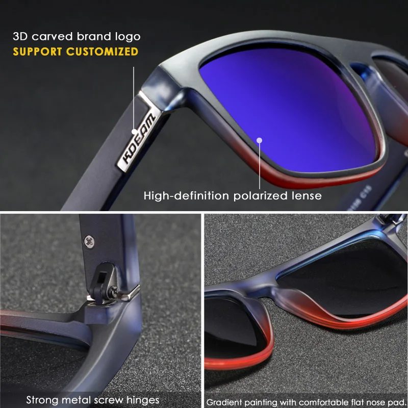 Мужские и женские зеркальные очки KDEAM, поляризационные солнцезащитные очки квадратной формы с чехлом