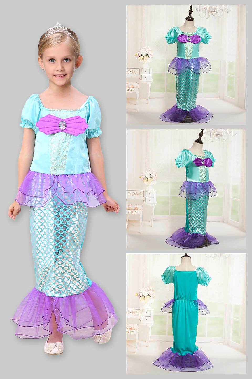 Элегантное платье Русалочки для маленькой девочки, платье для вечевечерние НКИ в честь Дня рождения, красивое платье для девочек, нарядный костюм для косплея на Хэллоуин