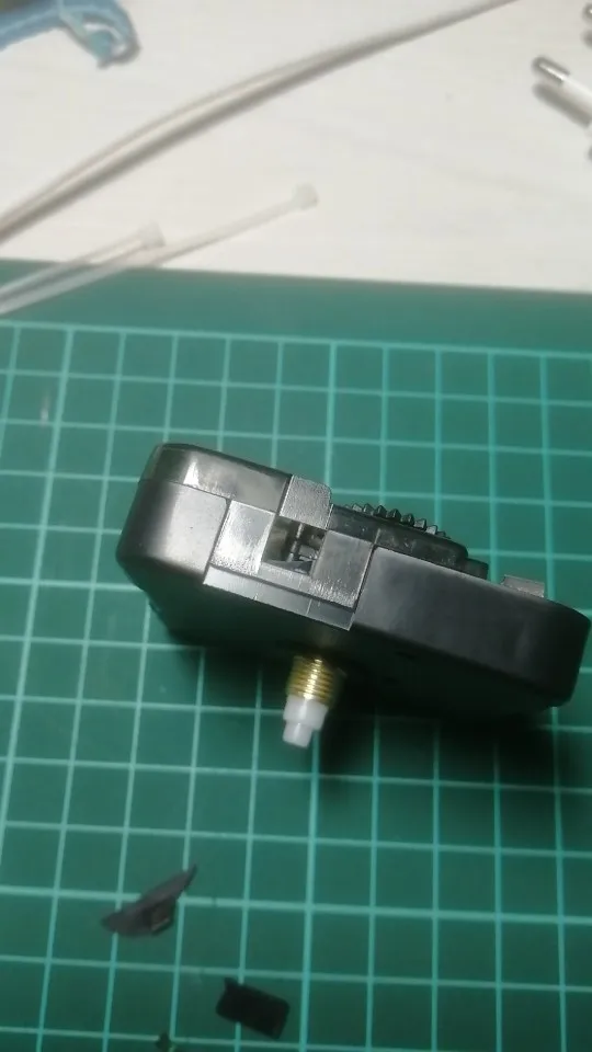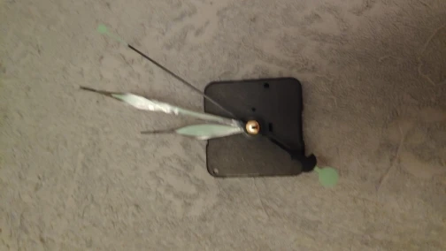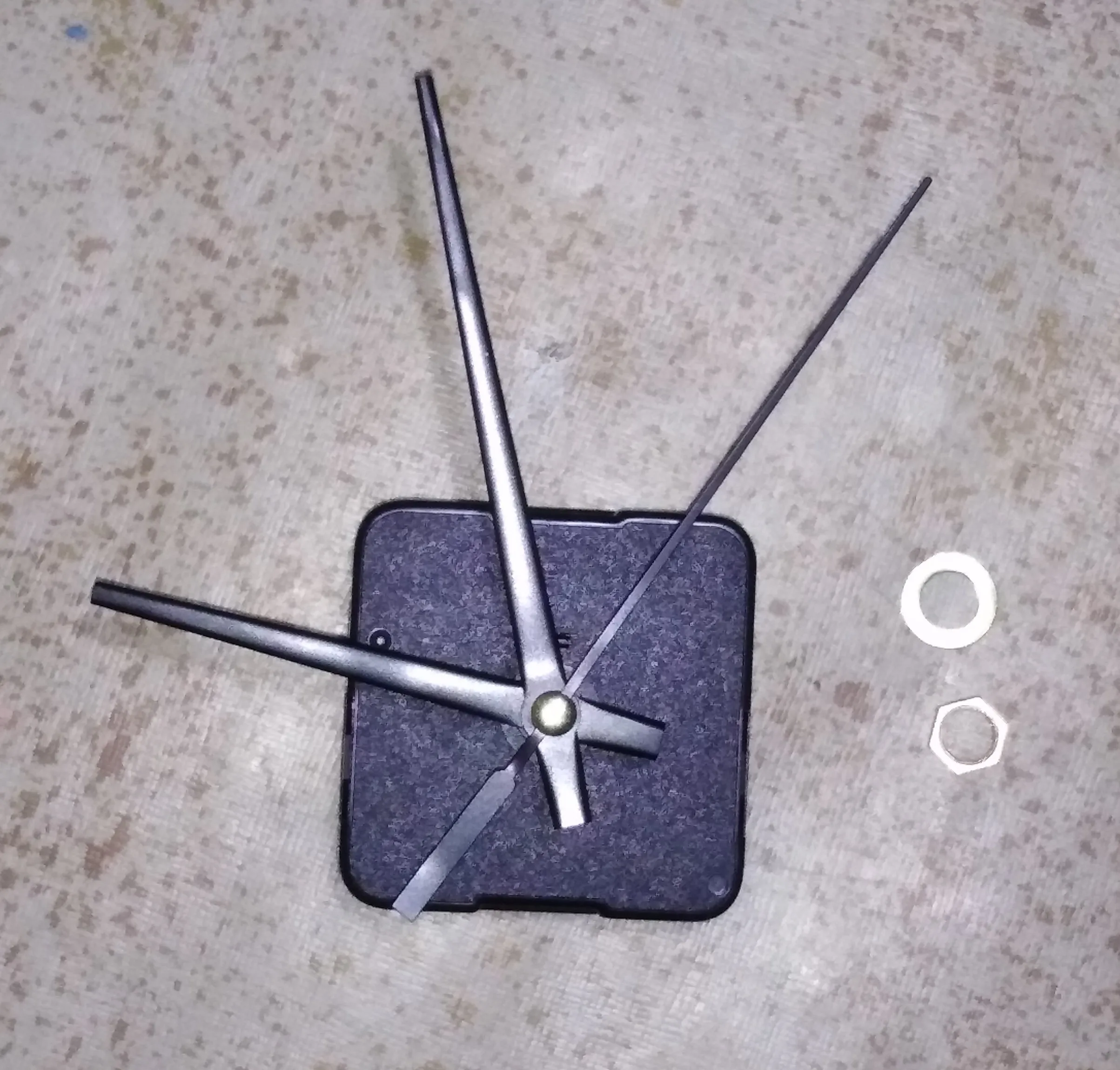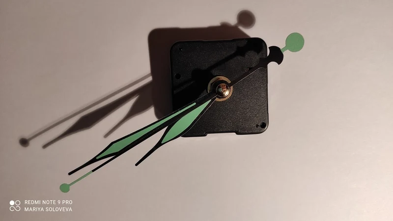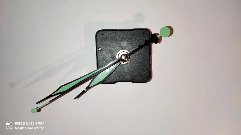 механизм хороший, стрелки пришли ровные .Часы работают тихо, то что надо. Не доглядела, что штырь маленький , приклеила на двухсторонний скотч, держится отлично.