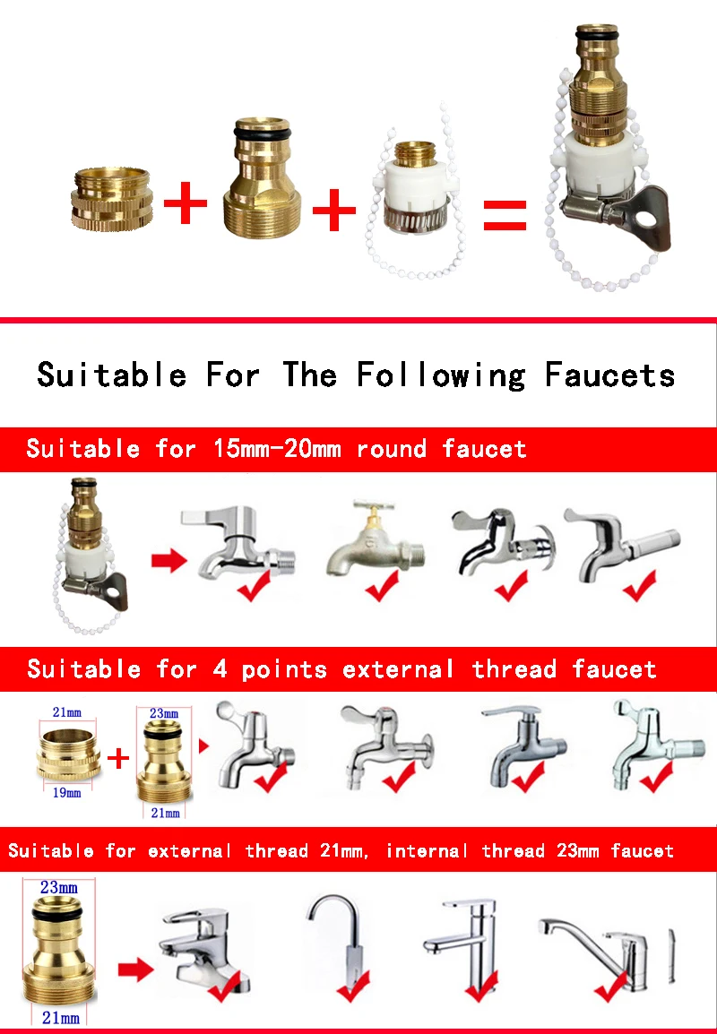 Если вам нужен соединитель 3/4 ", пожалуйста, нажмите на картинку ниже, или свяжитесь со службой поддержки клиентов, чтобы изменить тип разъема, который вы хотите, следующий соединитель может быть подключен к разъему 3/4 'с резьбой европейского стандарта