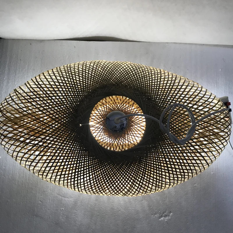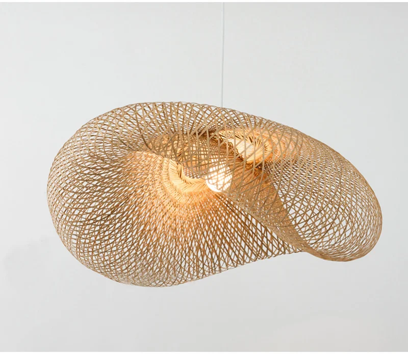 Китайский бамбуковый подвесной светильник ручной работы из плетеного ротанга с волнистым абажуром, подвесной светильник для ресторана, чайной комнаты, бамбуковый светильник