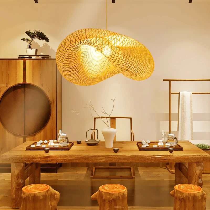 Китайские подвесные светильники из бамбука ручной работы, плетеные волнистые подвесные светильники из ротанга, подвесные светильники для ресторана, коридора, чайной комнаты, бамбуковое освещение