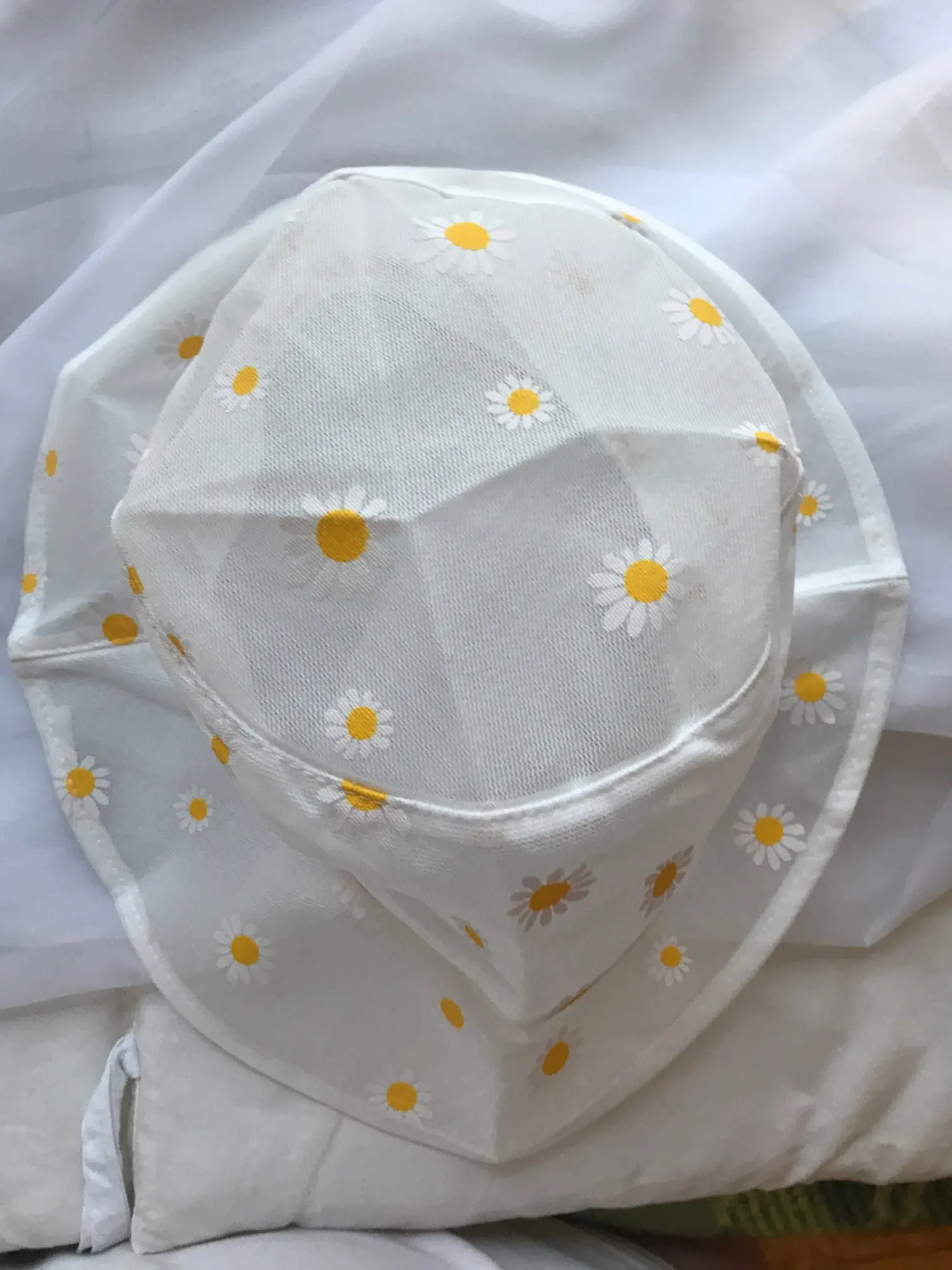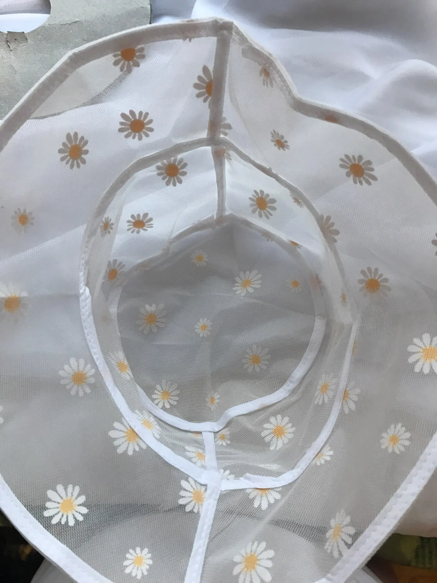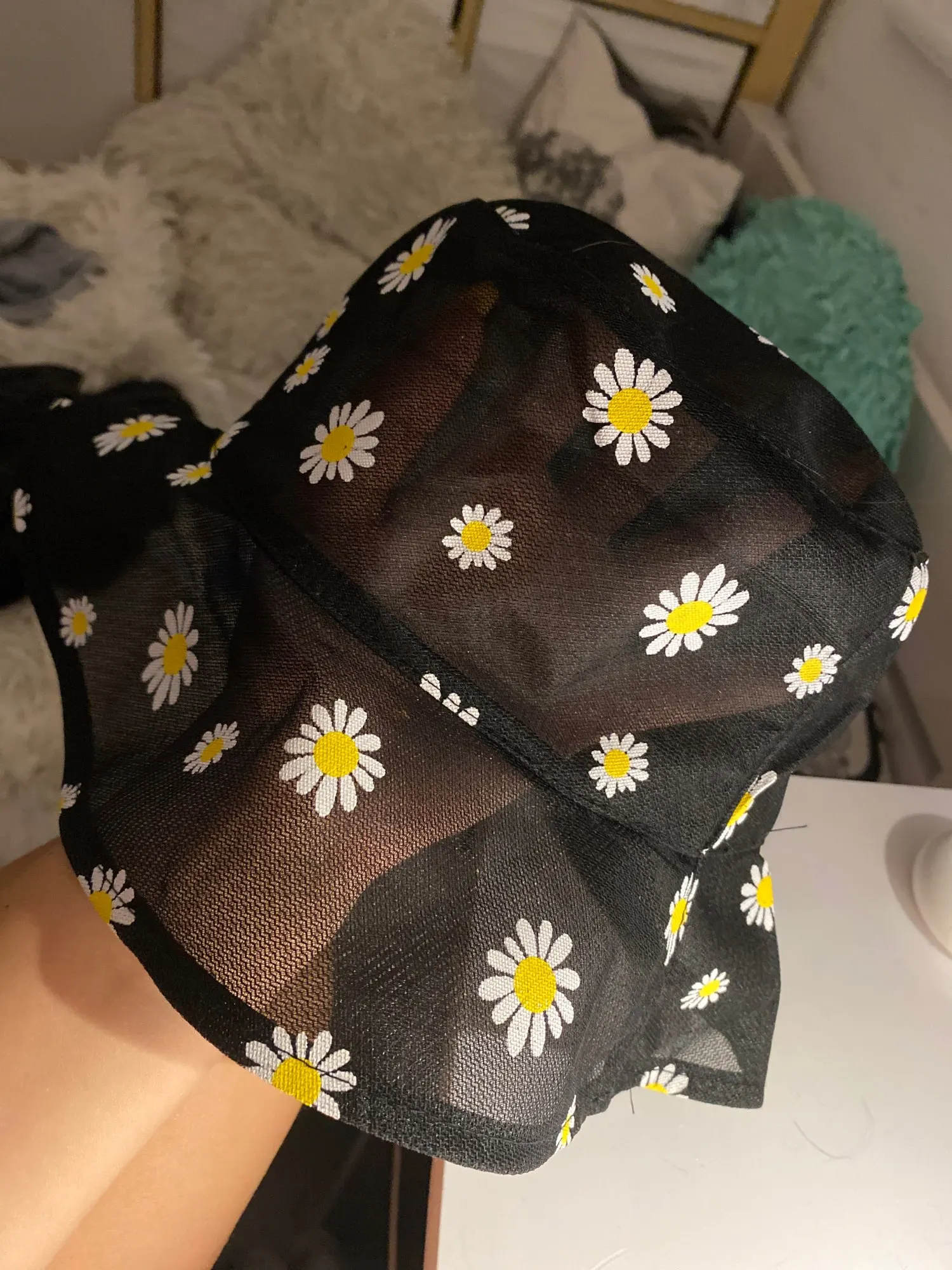 Ромашки не расшитые, как описано, они напечатаны. Некоторые из принтов потерли и поэтому в целом качество не отличное. Все еще очень милый товар.