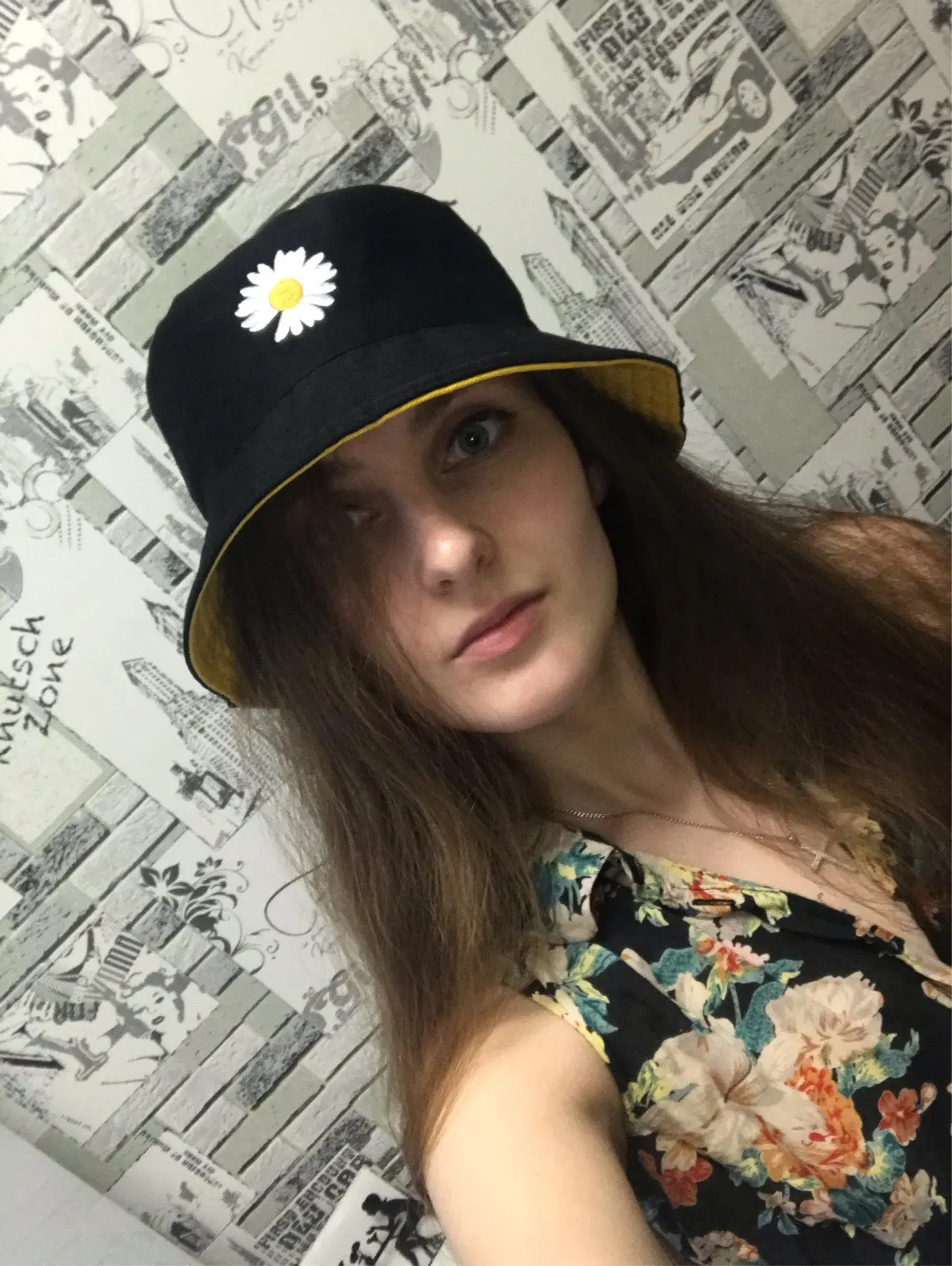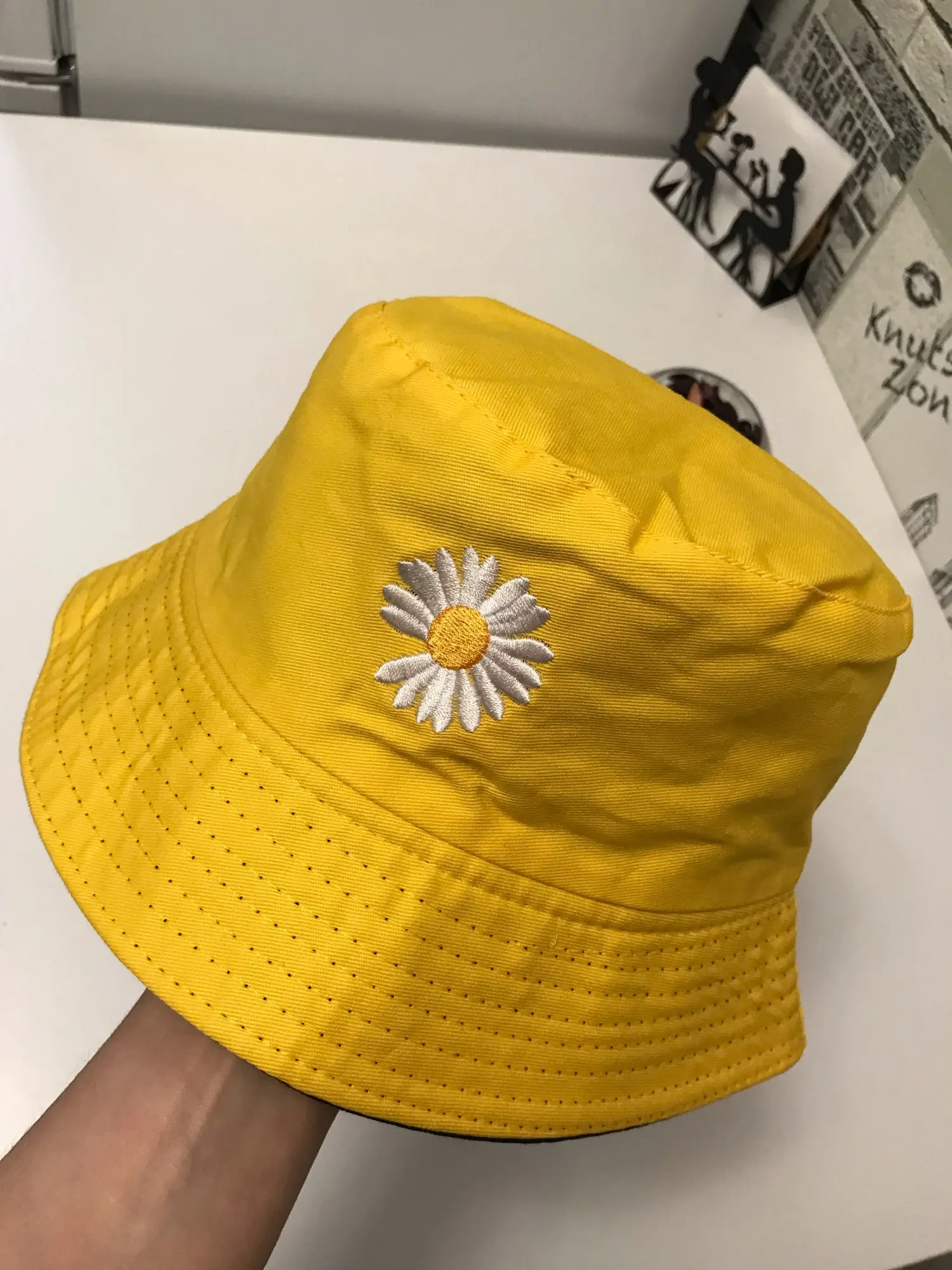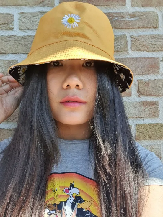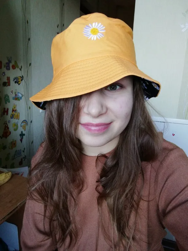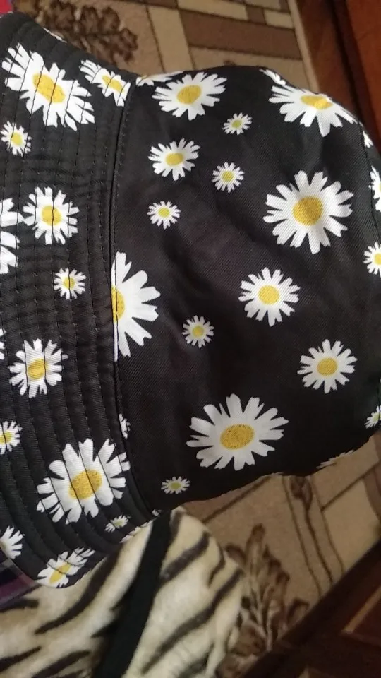 Отличное качество! Выглядит точно так же, как на фотографиях. Я был удивлен, когда он пришел, потому что шляпа на самом деле двухсторонняя! Я думал, что это две отдельные шляпы, но одна сторона желтая, а другая черная с цветами. Все еще мило.