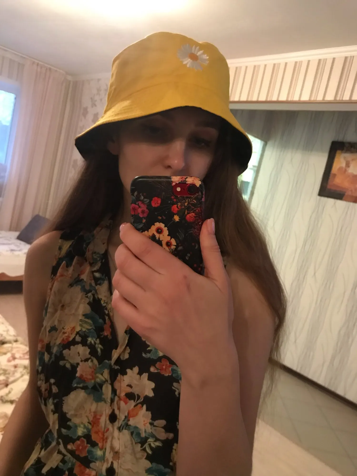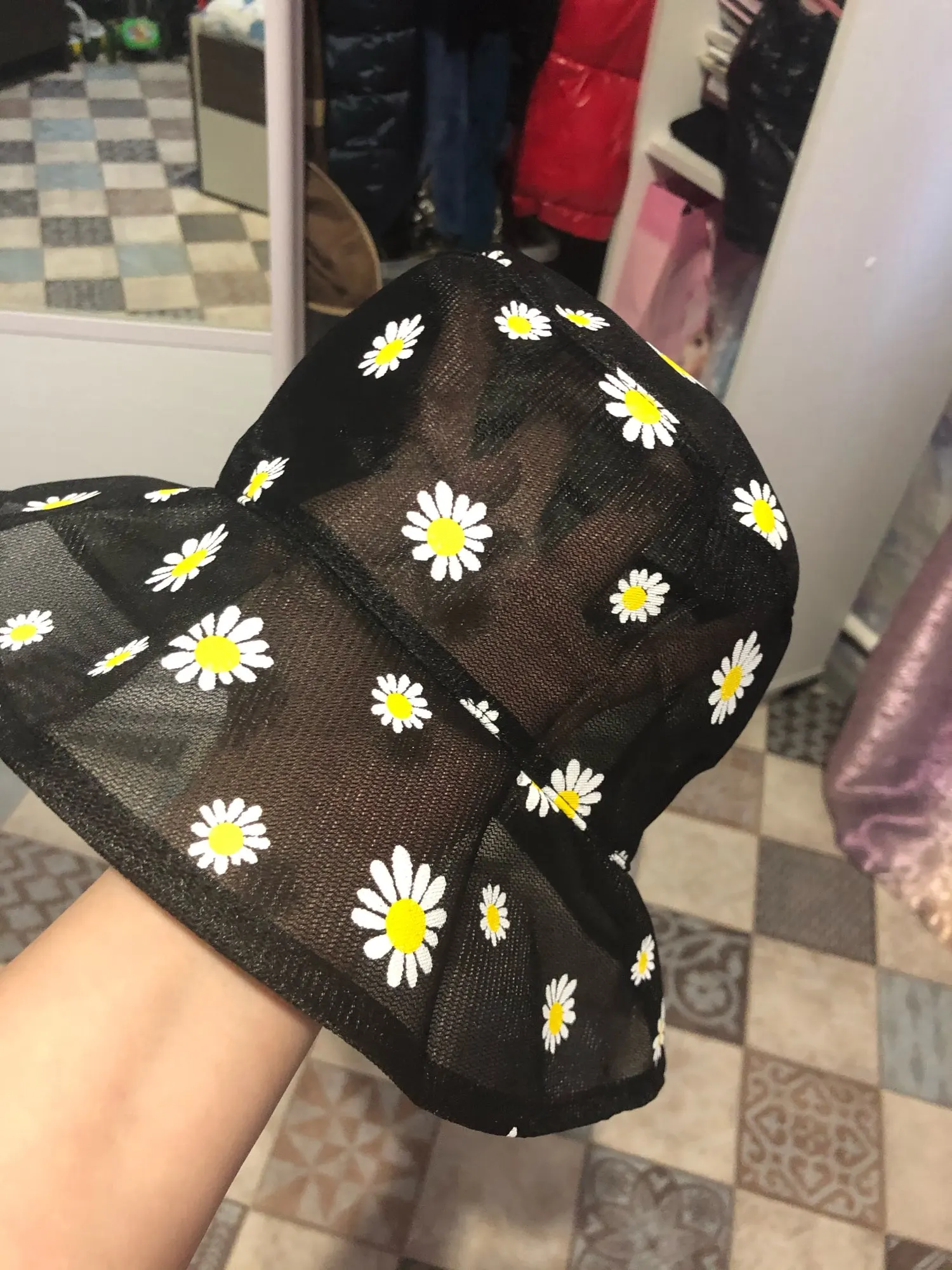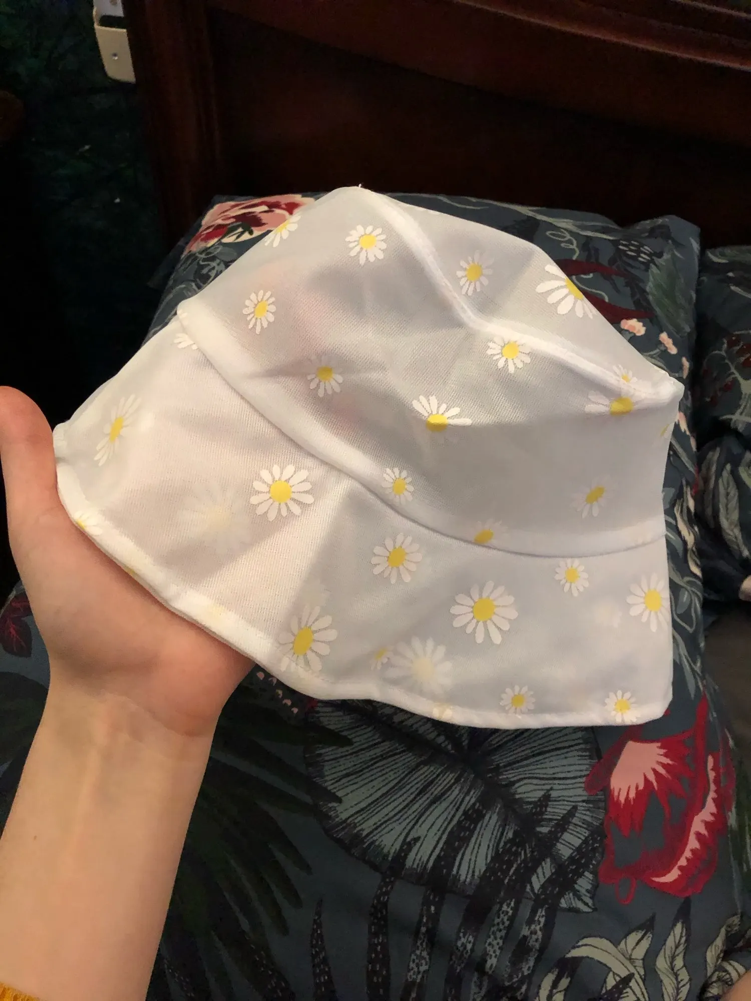 Отличное качество! Выглядит точно так же, как на фотографиях. Я был удивлен, когда он пришел, потому что шляпа на самом деле двухсторонняя! Я думал, что это две отдельные шляпы, но одна сторона желтая, а другая черная с цветами. Все еще мило.