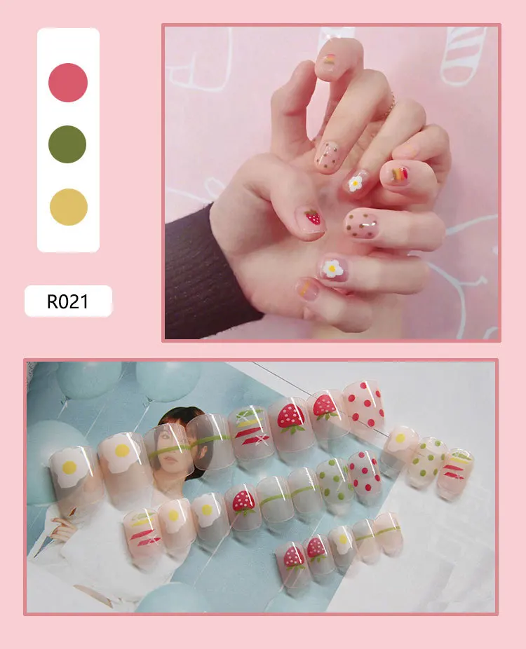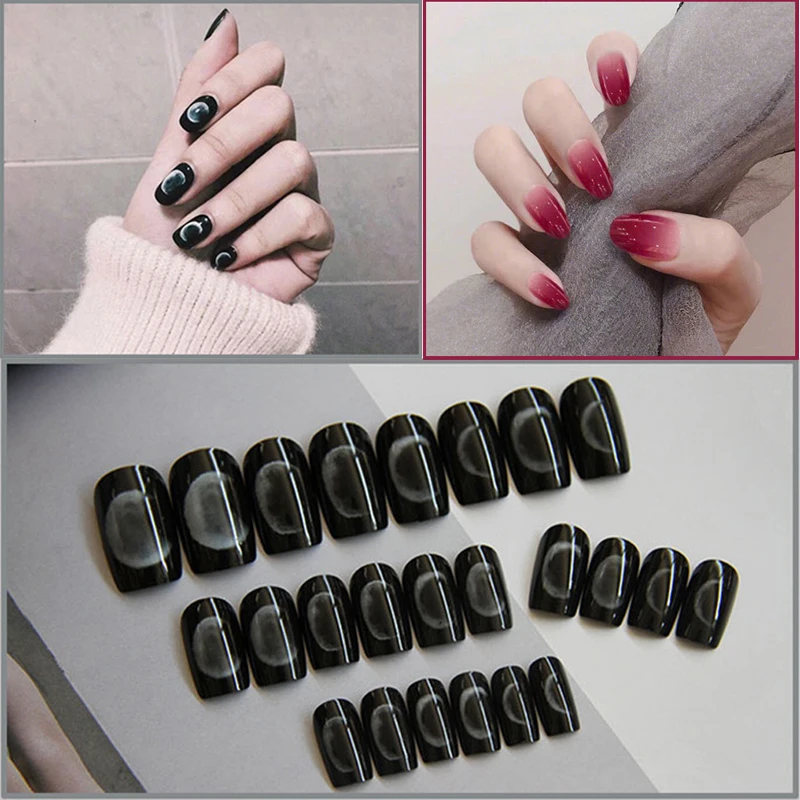 Набор съемных искусственных ногтей, 24 шт., полное покрытие для коротких декоративных ногтей, накладные ногти с клеем