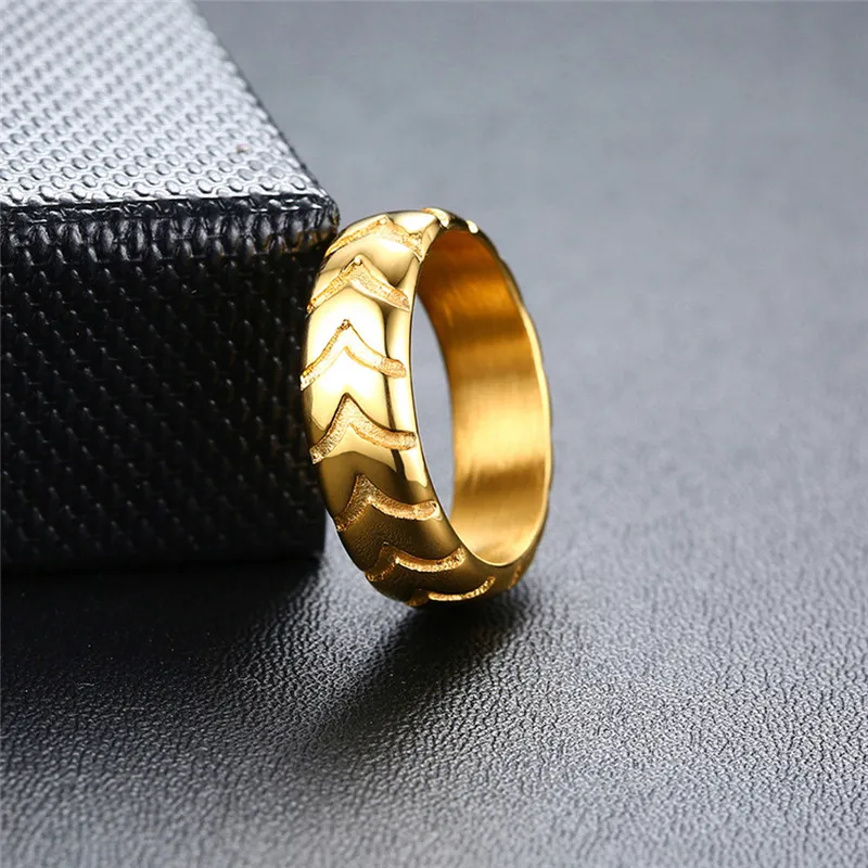 Новинка 2022, модное винтажное мужское обручальное кольцо с рисунком в виде шин из нержавеющей стали zorcins под золото, оптовая продажа