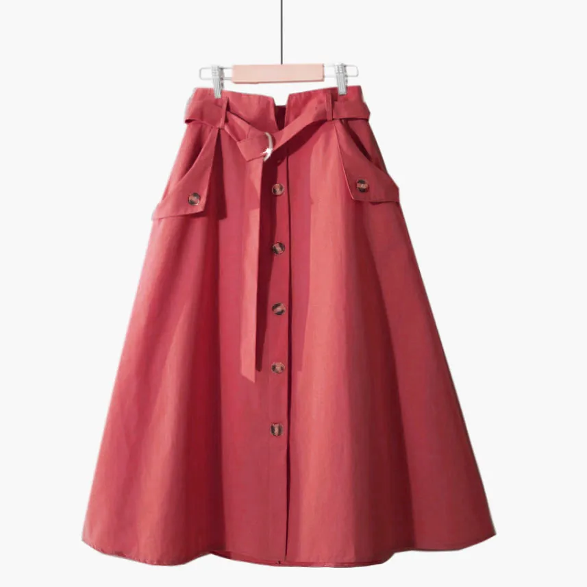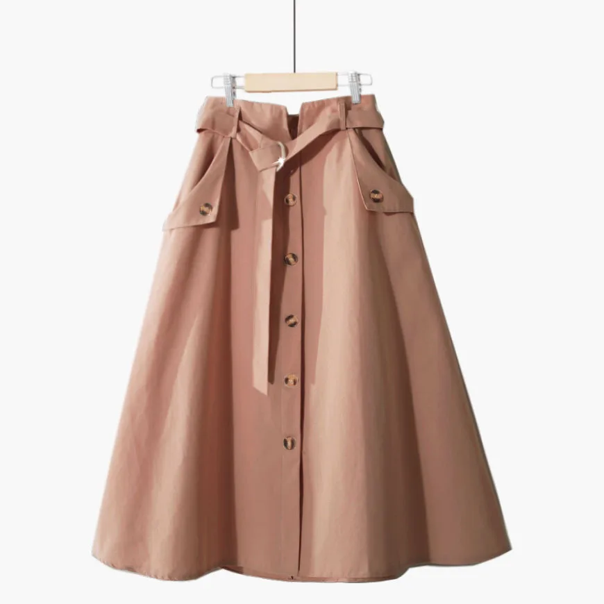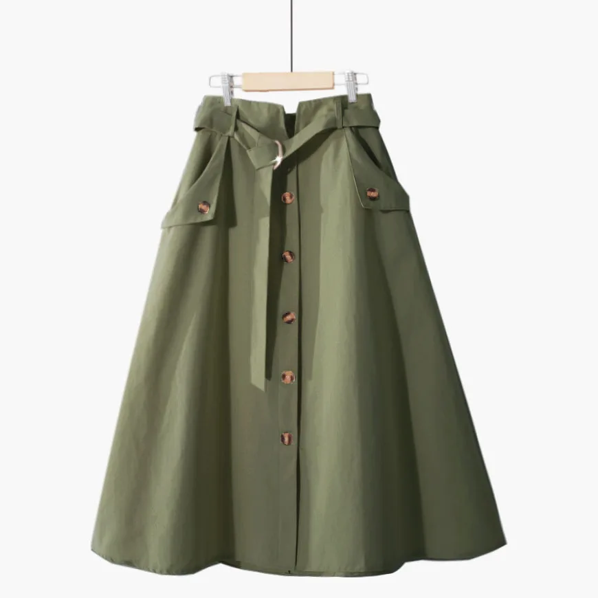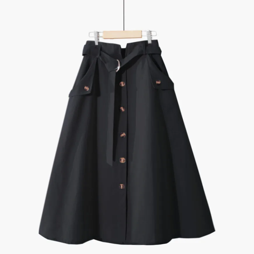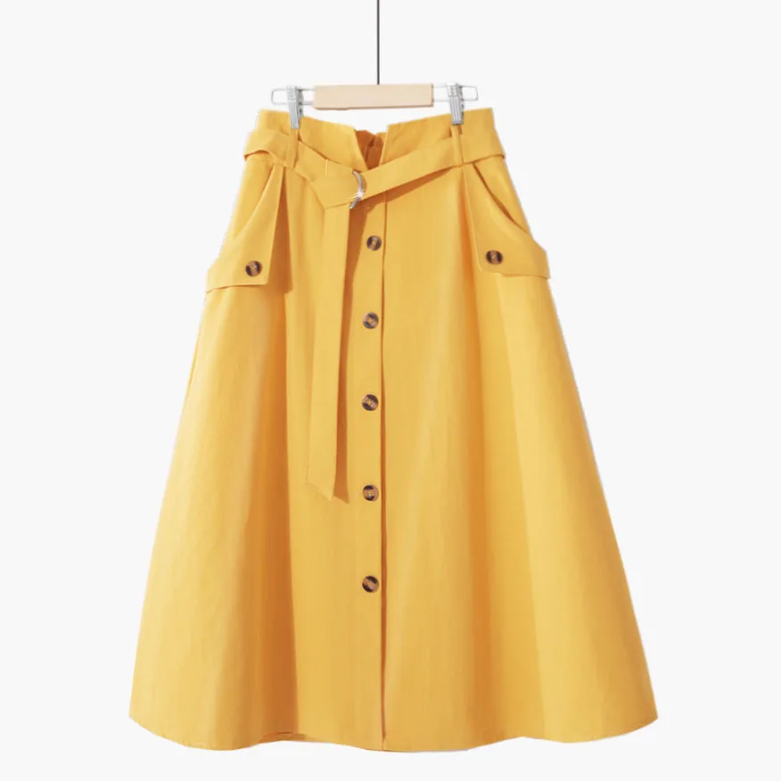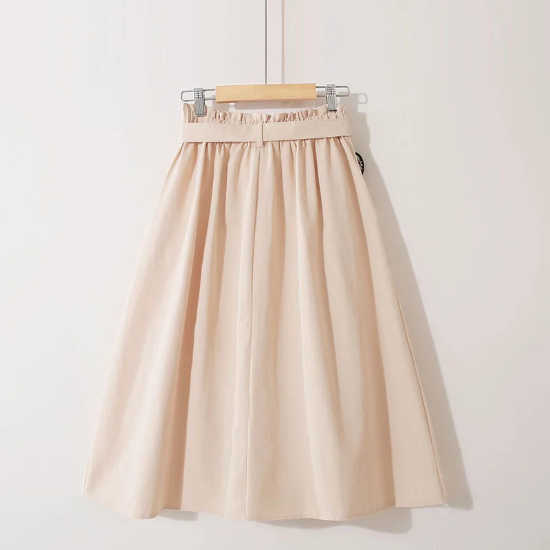Юбка женская хлопковая средней длины на шнуровке, однобортная трапециевидная юбка с завышенной талией, черная, на лето