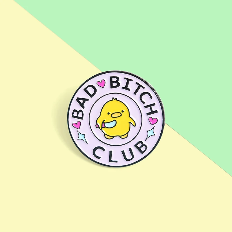 Круглая брошь с милыми животными Bad Girl Club, креативная маленькая Желтая утка, мультяшный нож, значок на лацкан, женская, Студенческая, модная, розовая