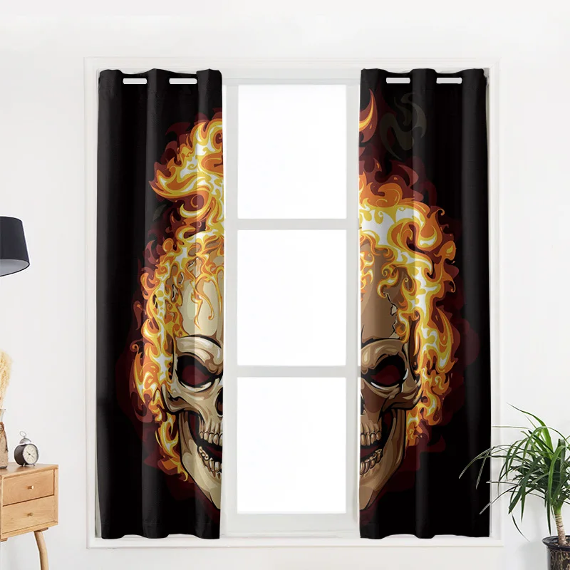 Художественные шторы на окна с красным пламенем и черепом для гостиной, кухни, спальни, современные оконные шторы, шторы