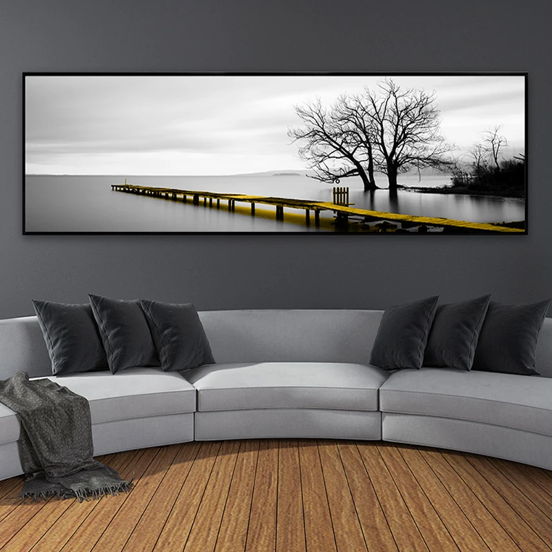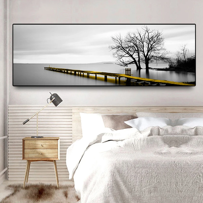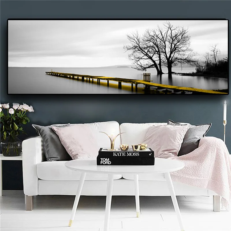 Спокойное озеро поверхность желтый длинный мост сцена холст картины пейзаж Куадрос плакаты и принты настенные картины для домашнего декора