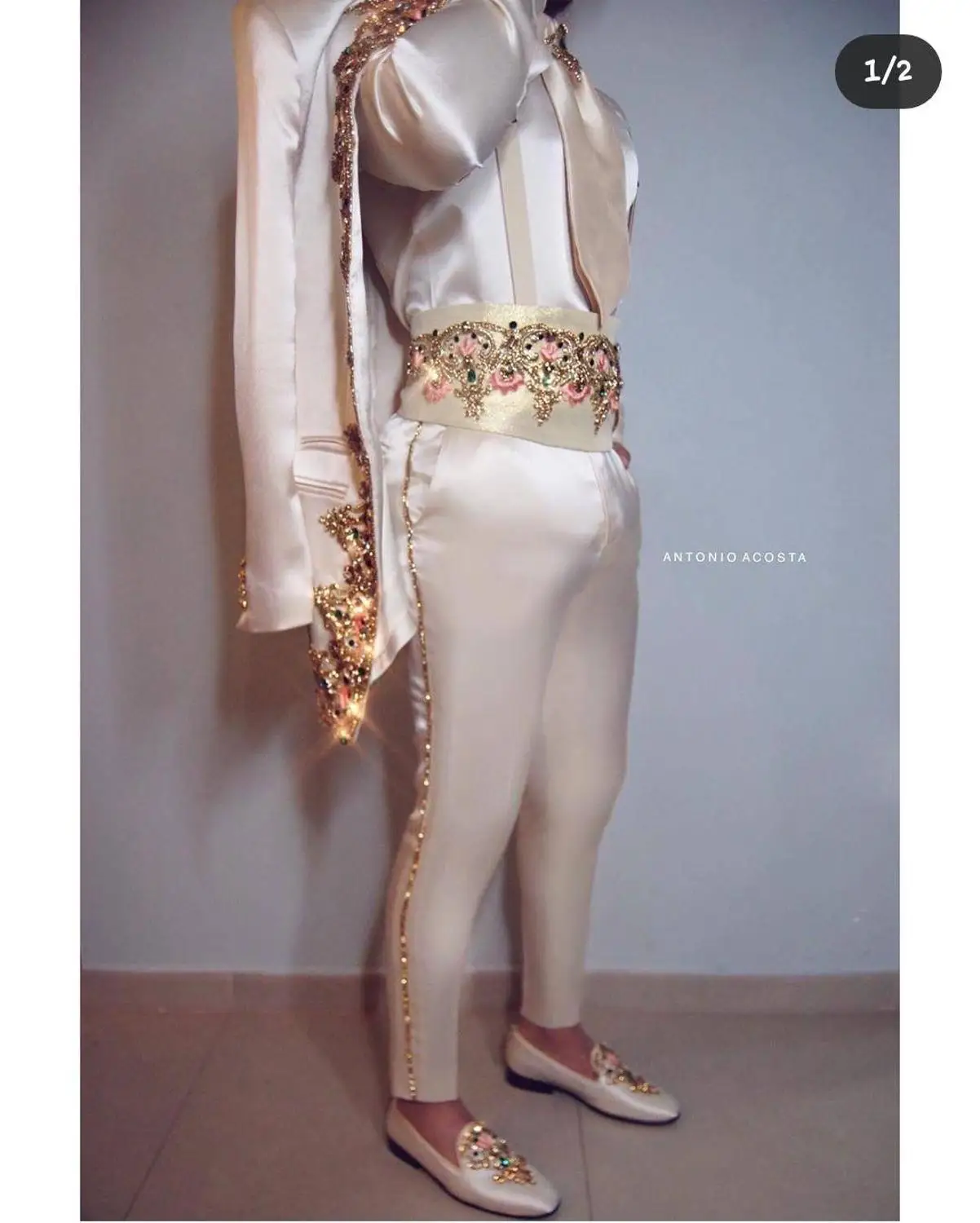 Мужской костюм из двух предметов (пиджак + брюки + пояс), итальянский приталенный Свадебный костюм с воротником-стойкой, мужской костюм с вышивкой на заказ, 2020