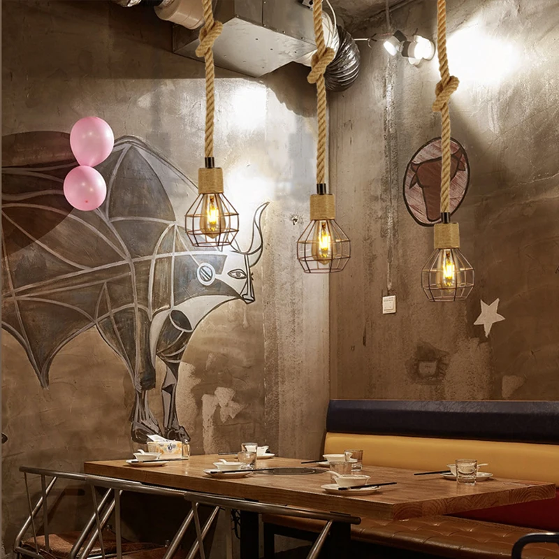 Подвесной ретро-светильник в стиле лофт, освещение в стиле индастриал для кухни, подвесные лампы из пеньковой веревки, светильник ветительные приборы для ресторана, бара, столовой, домашний декор