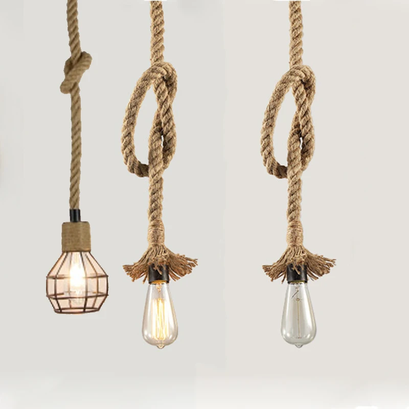 Подвесной светильник в стиле ретро, индустриальная веревка из пеньк...