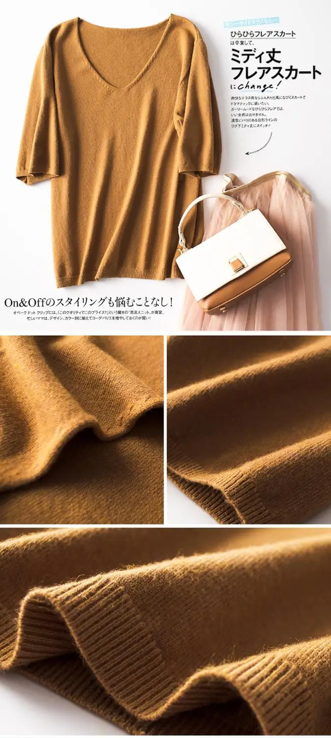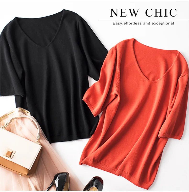 Женская трикотажная футболка с коротким рукавом, V-образным вырезом