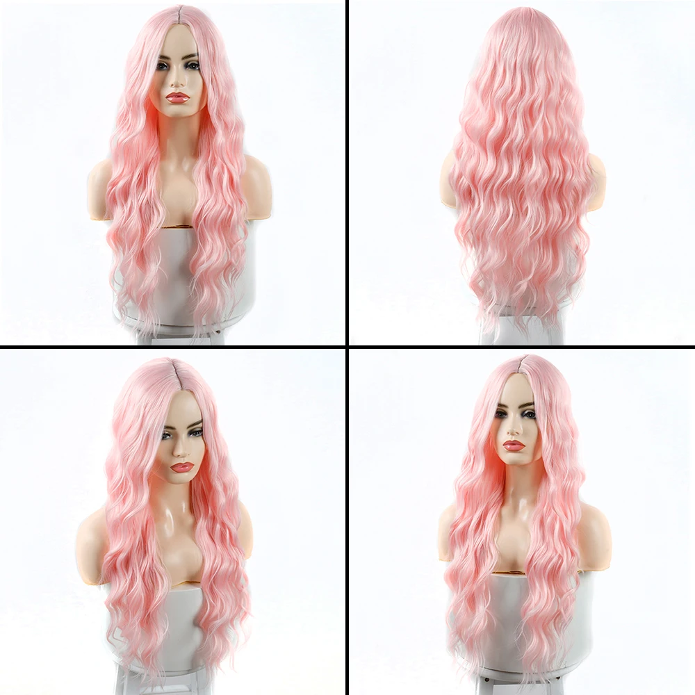 Женский парик AZQUEEN, Длинный розовый термостойкий синтетический парик с волнистыми волосами, парик для косплея