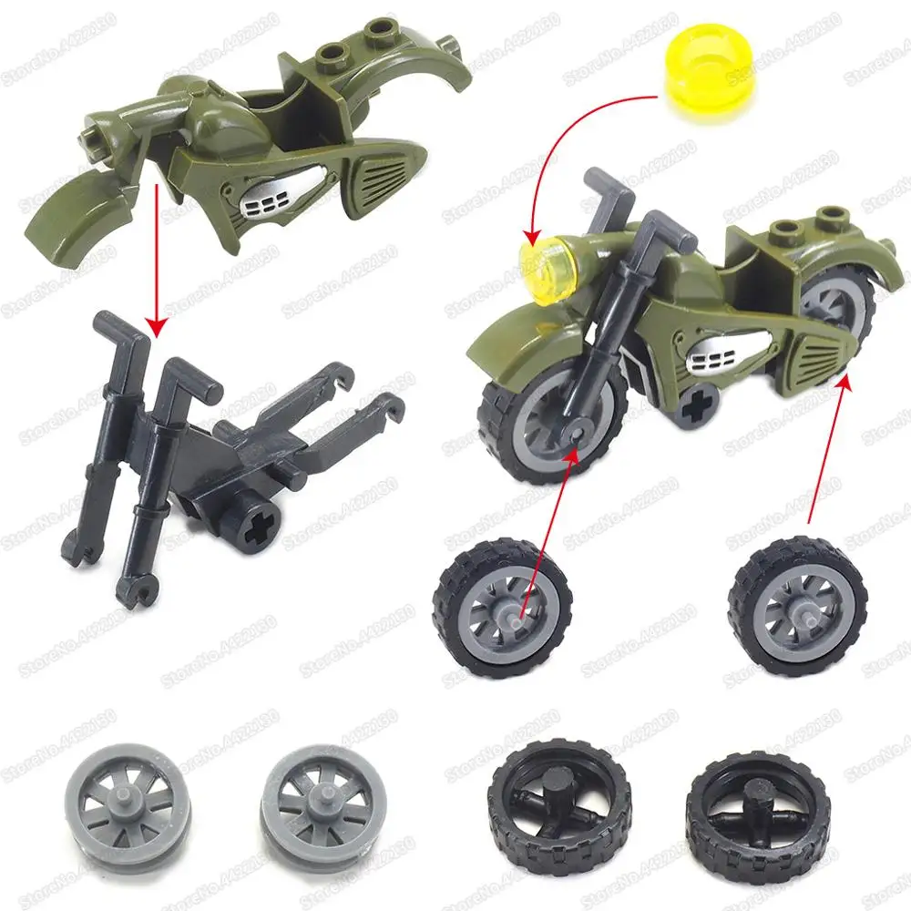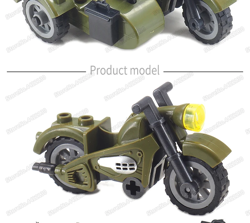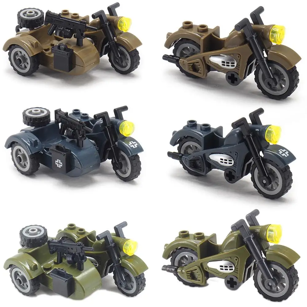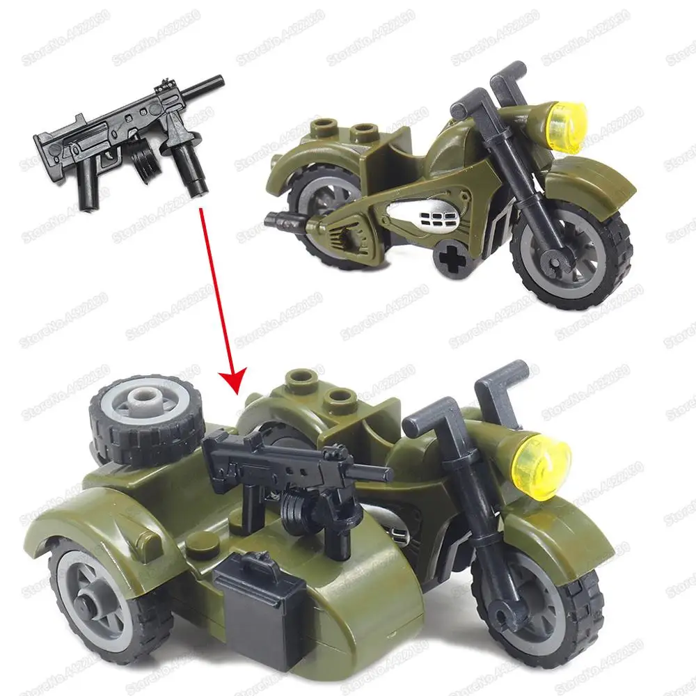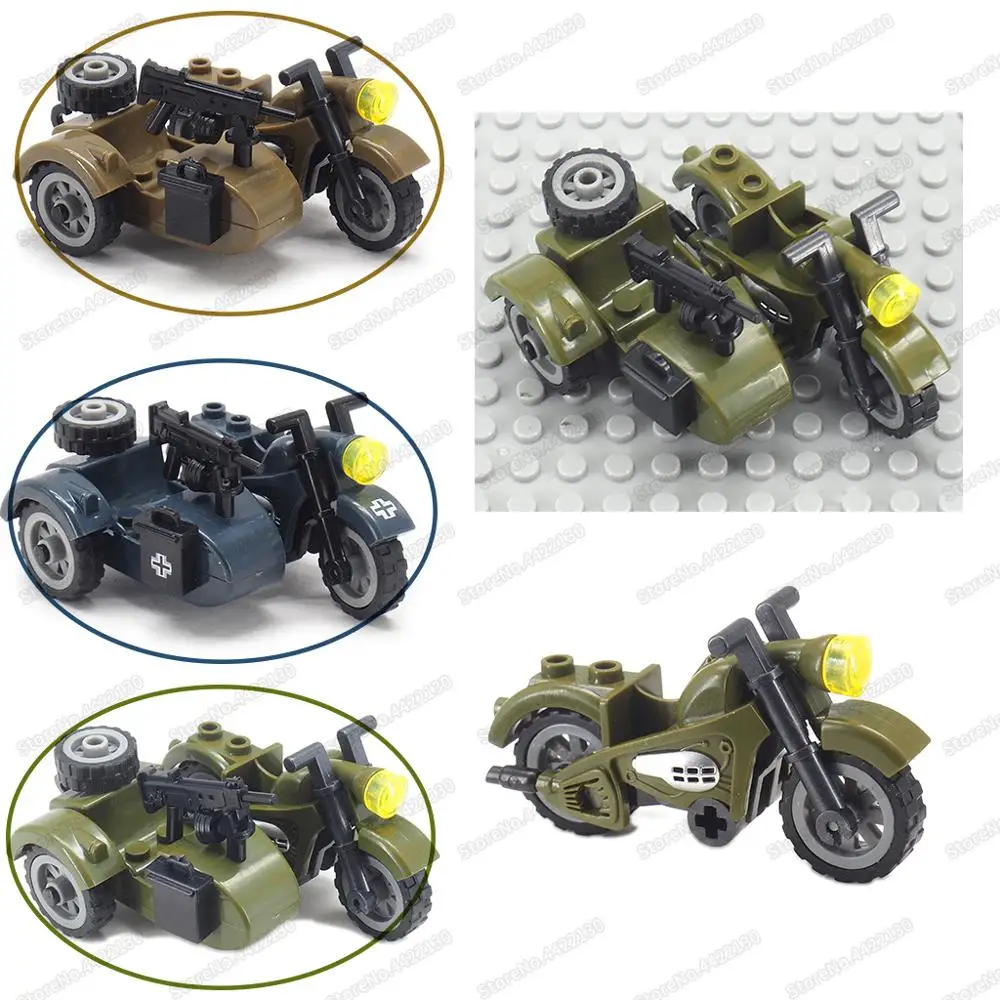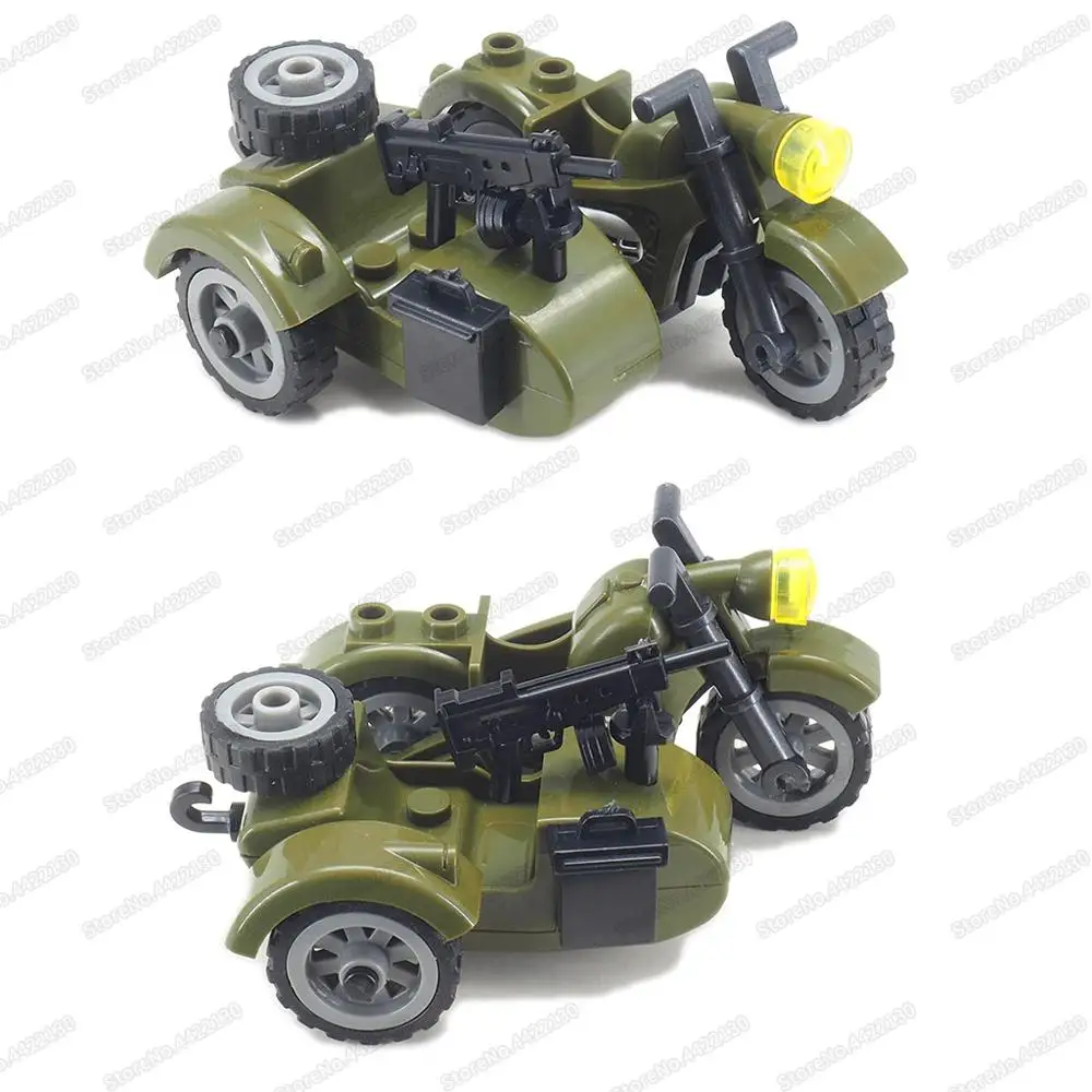 Фигурки военное оружие WW2 мото конструктор сборка солдат армия фронтальный патруль модель автомобиля Moc детский подарок Рождественская игрушка