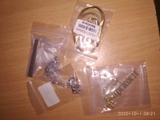 Брала комплектом за 2 руб всё, положили ещё какую-то цепочку под золото, с регулировкой длины, отлично!