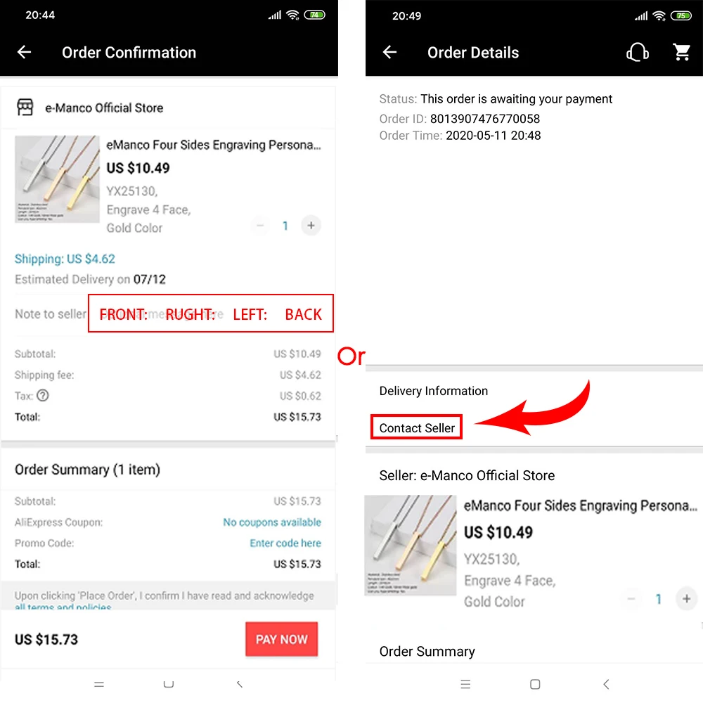 Покупала комплектом из трёх. Сначала хотела взять три подвески за цент, но потом решила переплатить (за 23₽ с гравировкой), чтобы сделали гравировку. Написала продавцу в комментарии к заказу, что хочу. Всё сделали в лучшем виде! Кулон был обернут отдельно от цепочки, чтобы не повредился. спасибо большое! Выше всяких похвал!