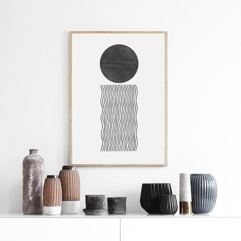 Черно-белый круг Геометрическая линия художественные принты нейтральный настенный художественный постер на холсте Скандинавская живопись картина Декор для гостиной
