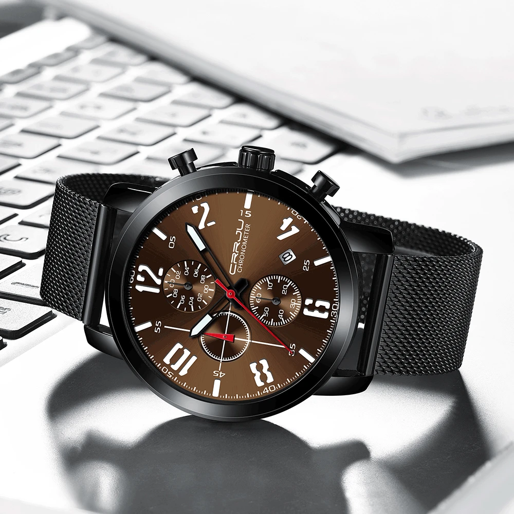 Мужские часы Crrju Топ бренд часы модные водонепроницаемые часы для...