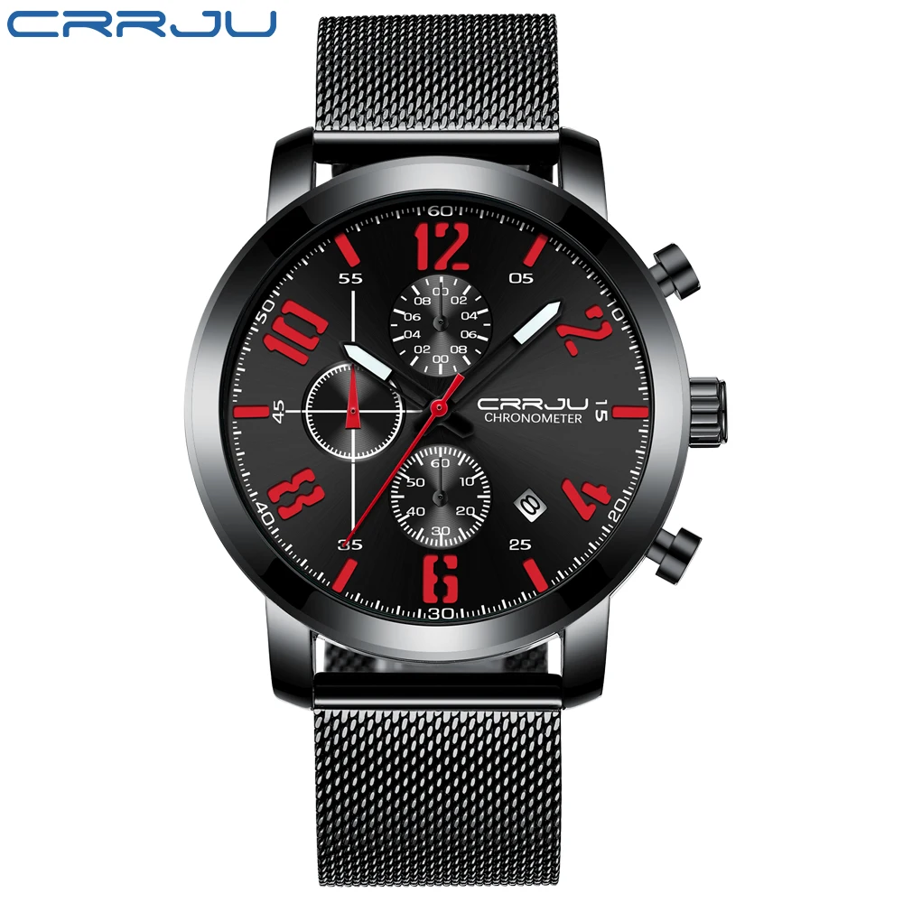 Часы CRRJU Мужские кварцевые с хронографом, брендовые водонепроницаемые спортивные деловые, из нержавеющей стали