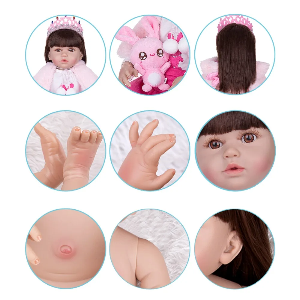 6) Структура: голова и конечности изготовлены из силиконового винила. Можно положить в воду. Импортированное мягкое виниловое сырье, нетоксичное; Кукольные конечности могут быть активными, они могут сидеть или лежать, не могут стоять, говорить или питаться.