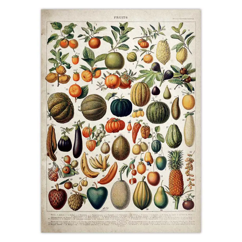 Винтажные овощи, фрукты, Фотопечать, античная настенная Художественная печать, ботаническая картина, фотобумага