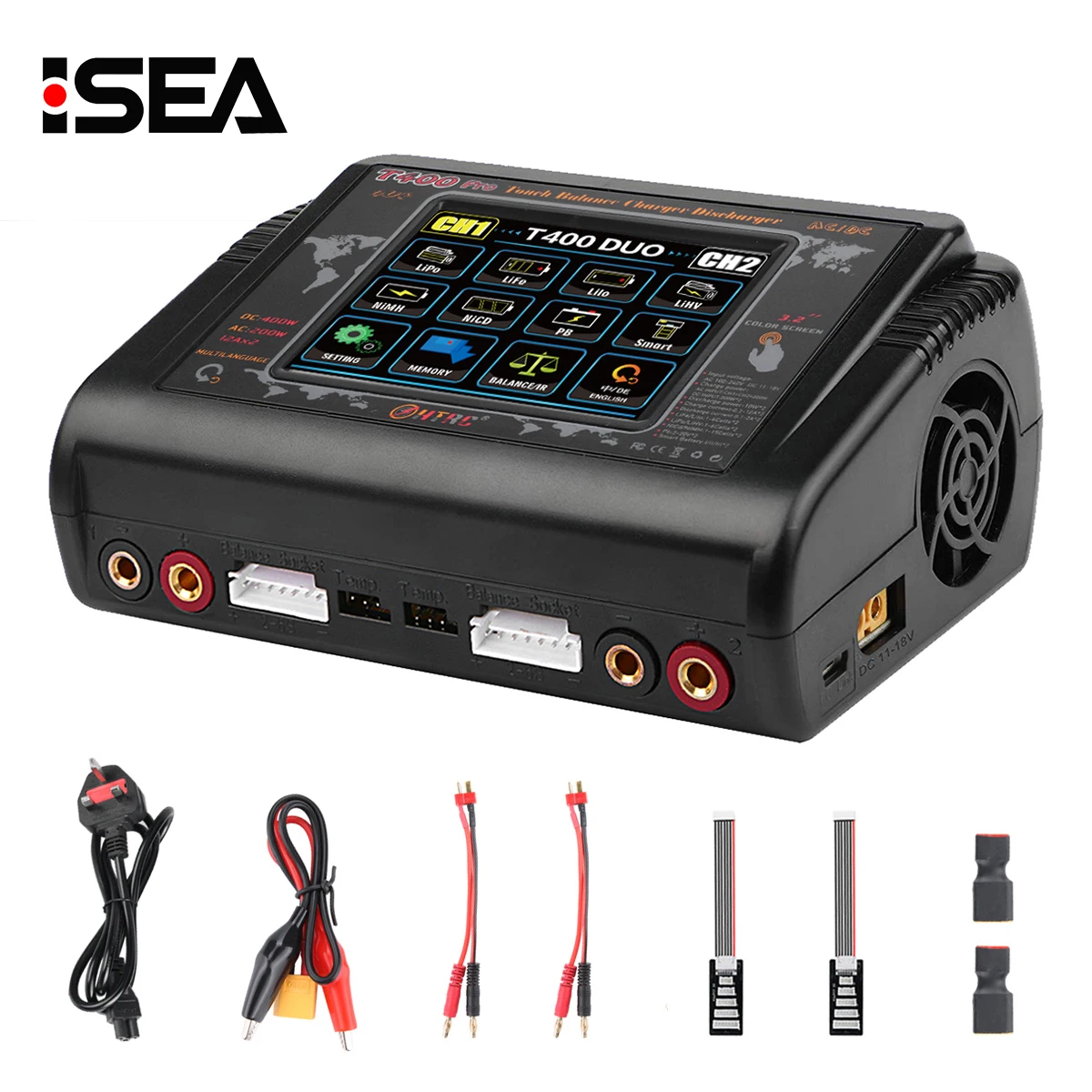 Зарядное устройство HTRC T400T240, постоянный ток 400Вт,240Вт, два зарядных канала, для аккумуляторов литийионных, LiPo, LiHV, LiFe, NiCd, NiMh, свинцово-кислотных для радиоуправляемых игрушек