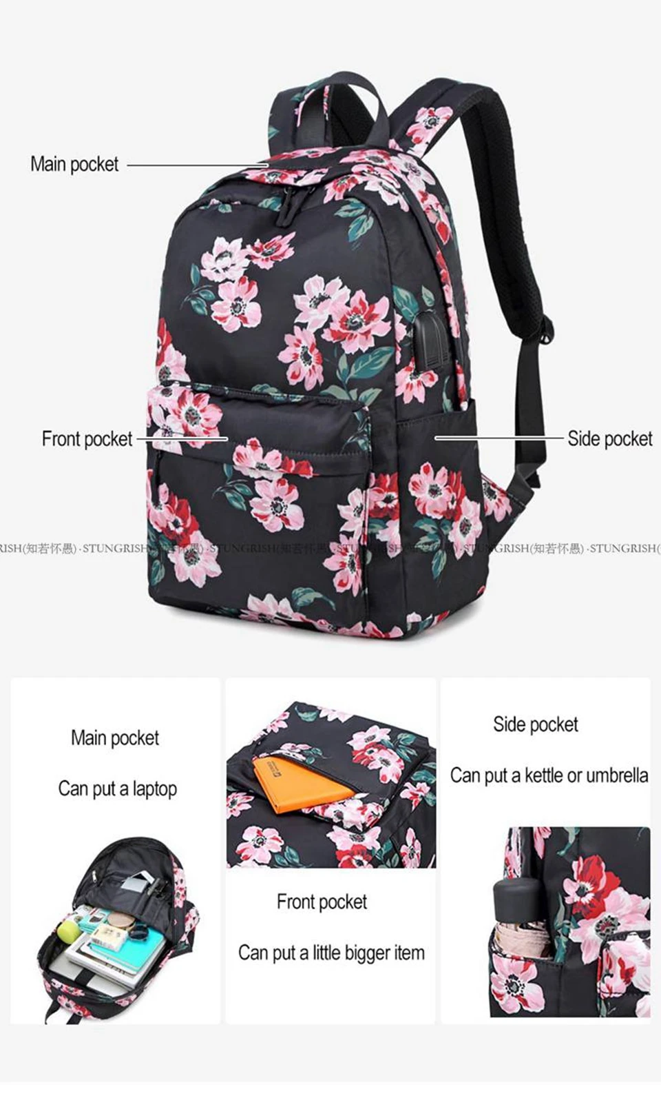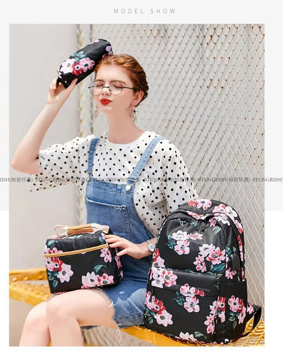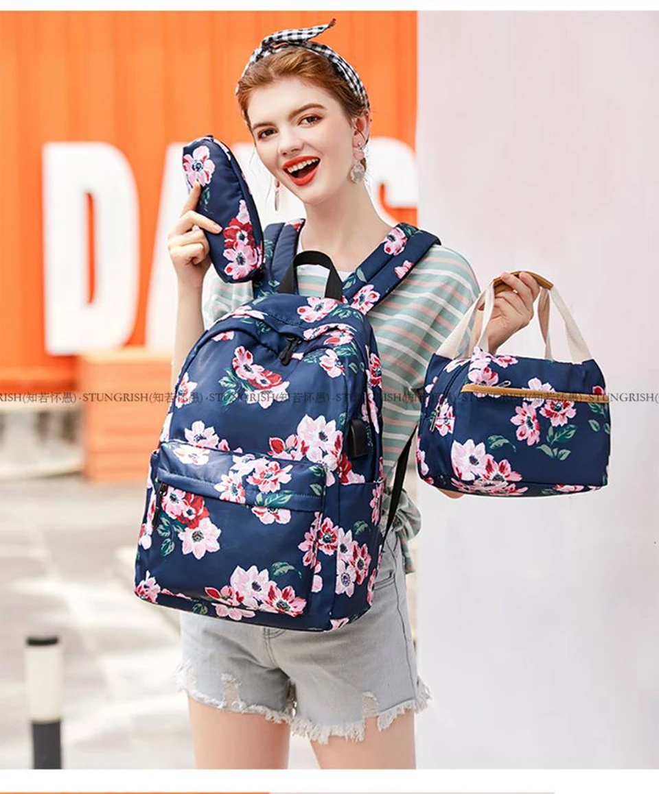 Рюкзак для девочек 3 в 1 комплект: рюкзак + Сумка-тоут + Сумка-карандаш, водонепроницаемый нейлоновый материал не рвет и не рвет, когда вы положите много внутри рюкзака, SBS гладкая молния, которая позволяет чувствовать себя хорошо и легко скользит.Школьный рюкзак для девочек-подростков: размеры 11,8 "x 5,5" x 16,9 "(Д * Ш * Г * В), Вес: 0,7 кг, может держать 14" деловая сумка для ноутбука, сумка для ланча: 9,1 "x 6,7" x 5,9 "(Д * Г * В), может поместиться 2 коробки для обеда и фруктов. Пенал: 7,9 "x 2,8" (Д * В), положите ручки или другие канцелярские принадлежности.Основной внутренний отсек может помещать ноутбуки, журналы, файлы формата А4 и так далее. Отделение для ноутбука с подкладкой, хорошо защищает ноутбук.Набор рюкзаков с цветочным рисунком можно использовать в качестве школьных сумок, повседневных рюкзаков, повседневных рюкзаков. Лямки мягкие и регулируемые, что может облегчить давление на плечо.Этот комплект школьных рюкзаков для девочек является многофункциональным, который может подойти для путешествий, кемпинга, школы, офиса, покупок, свиданий, вождения и т. д.Примечание:Поскольку размер измеряется вручную, реальный товар может немного отличаться от указанного выше размера.Из-за световых эффектов, настроек яркости/контрастности монитора и т. д. могут быть некоторые различия в цветовом тоне изображения и реального товара.Посылка:1 * Рюкзак1 * сумка для завтрака1 * пенал