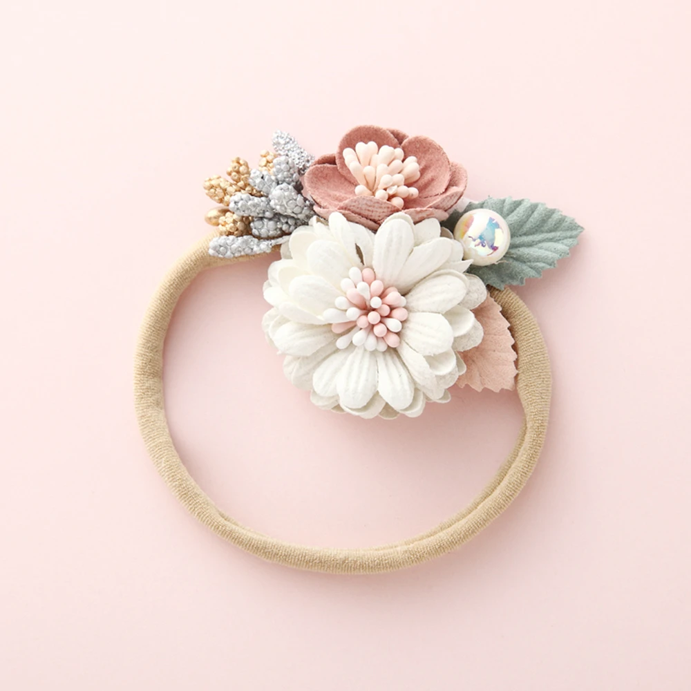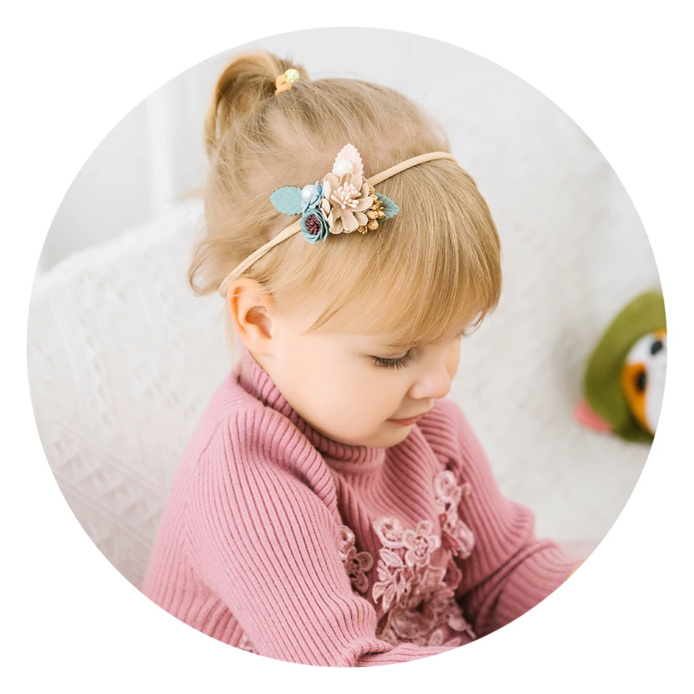 Модная повязка на голову с жемчужинами и цветами для девочек новорожденных эластичная повязка на голову для принцесс детский новый стиль милые головные уборы подарки