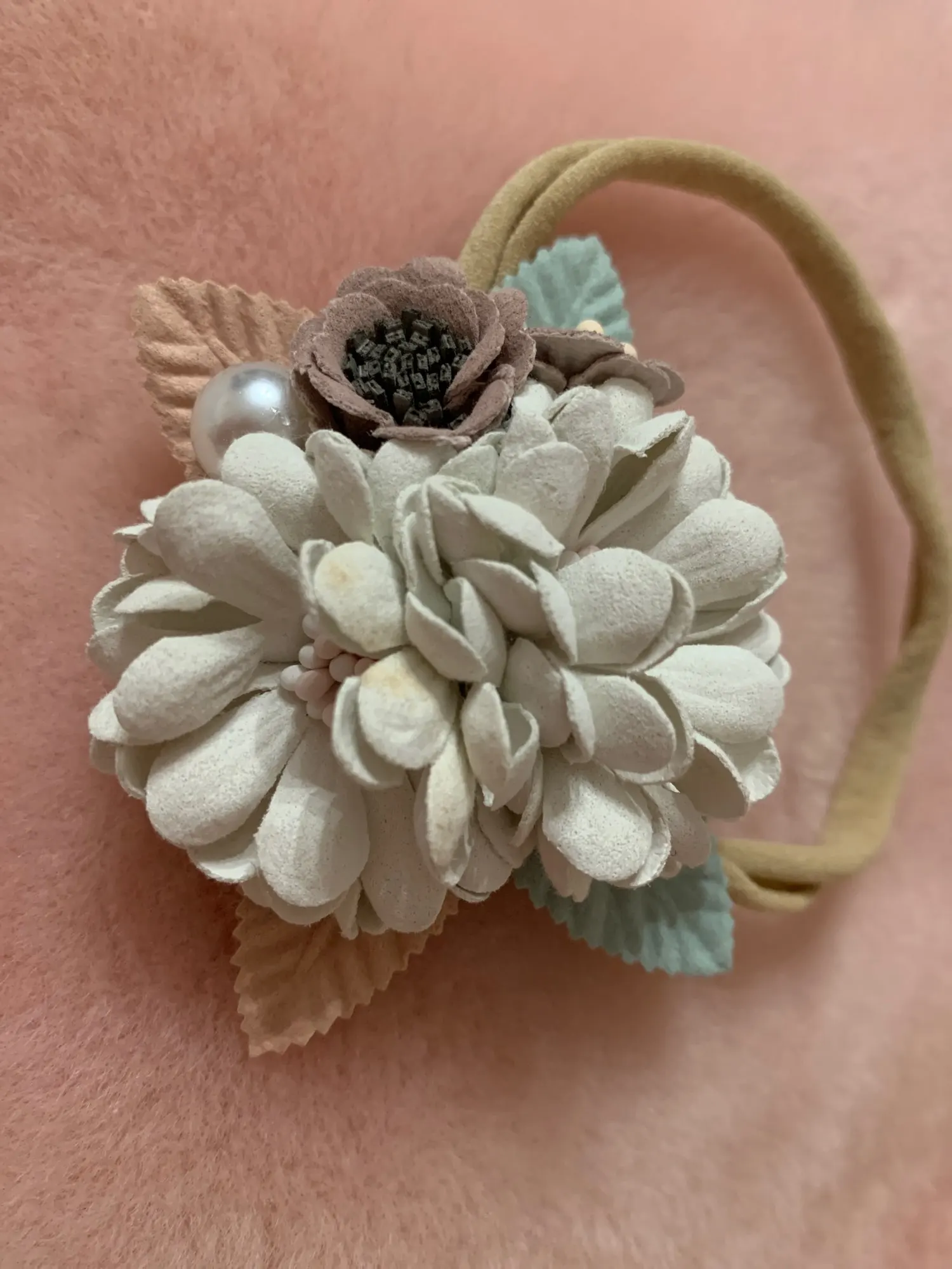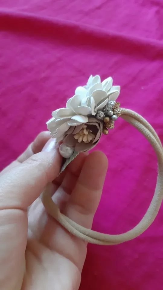 Симпатичная повязка, резинка очень мягкая, хорошо тянется. Именно такой вариант цветов лучше подойдёт деткам от 6 месяцев, так как цветы очень крупные, из минусов - жёлтые пятна на лепестках, увы, ни чем не отмыть, ну и они немного помятые, что и понятно при доставке в пакете. В целом красиво!