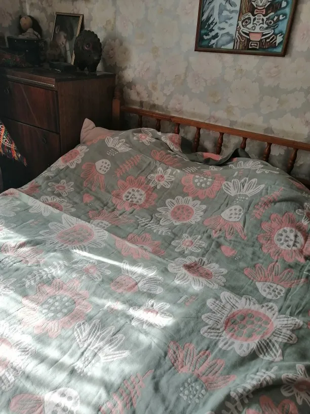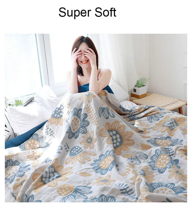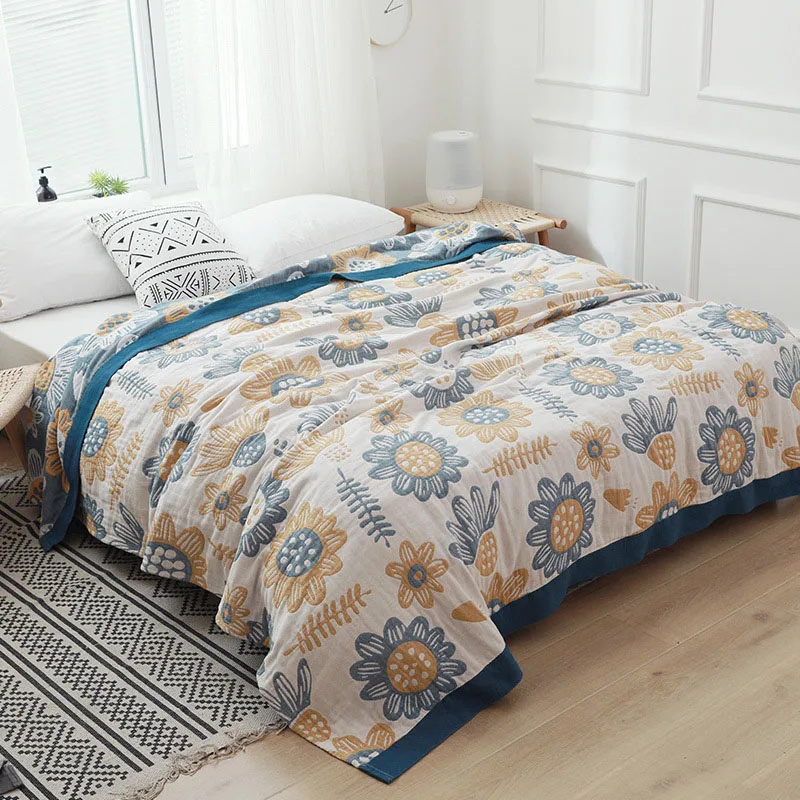 Японское летнее одеяло, тонкое Хлопковое одеяло с 5 слоями марли, покрывало с подсолнухами, машинная стирка, покрывало для кровати