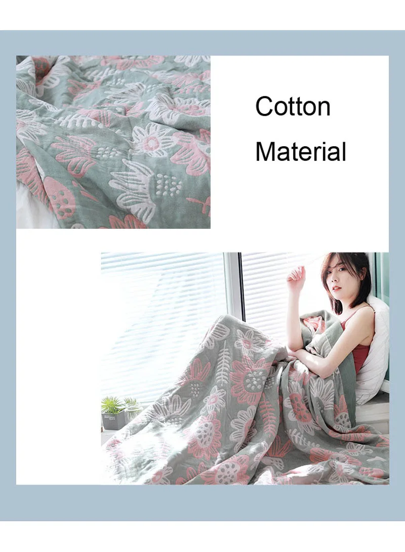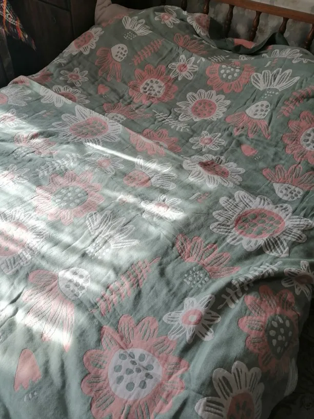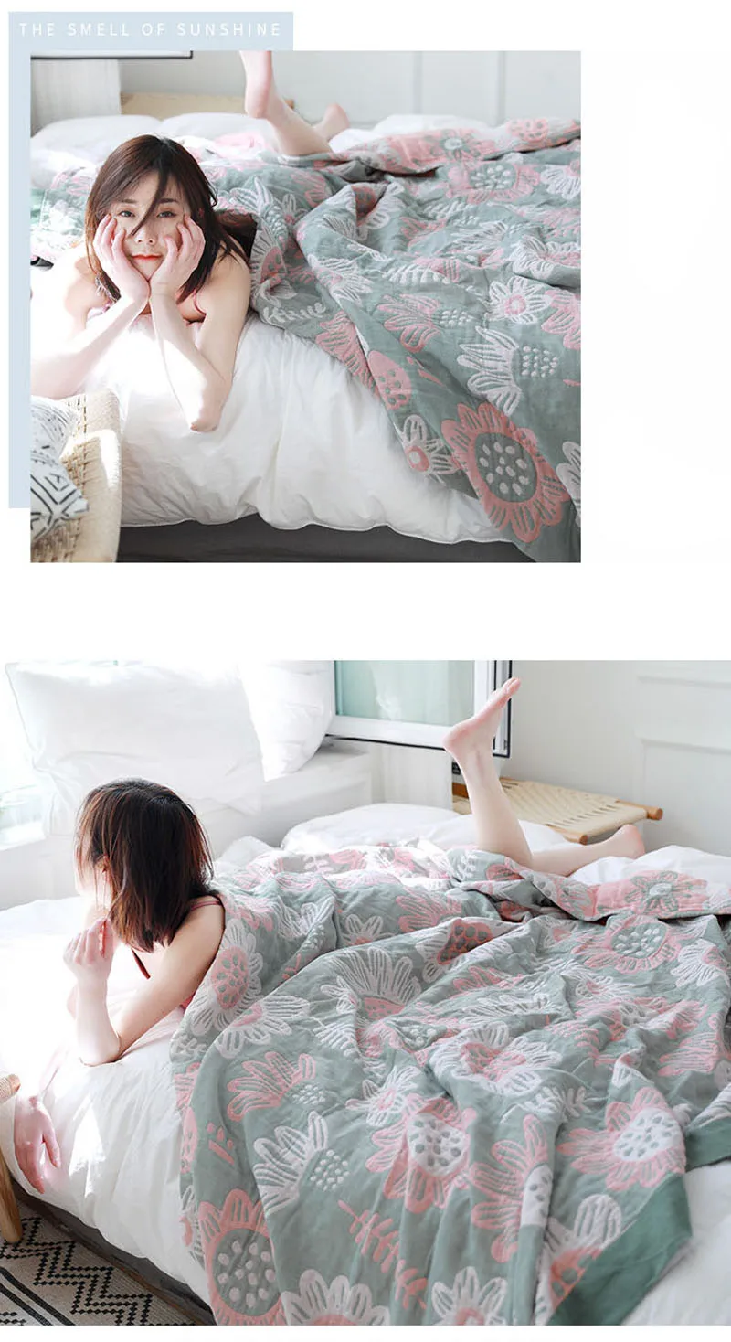 Японское летнее одеяло, Хлопковое одеяло, 5-слойное Марлевое тонкое одеяло, покрывало с подсолнухами, машинная стирка, покрывало для кровати, постельное белье