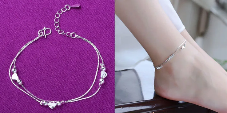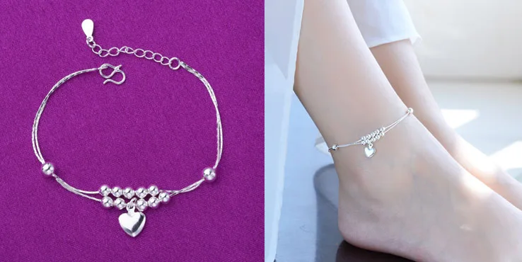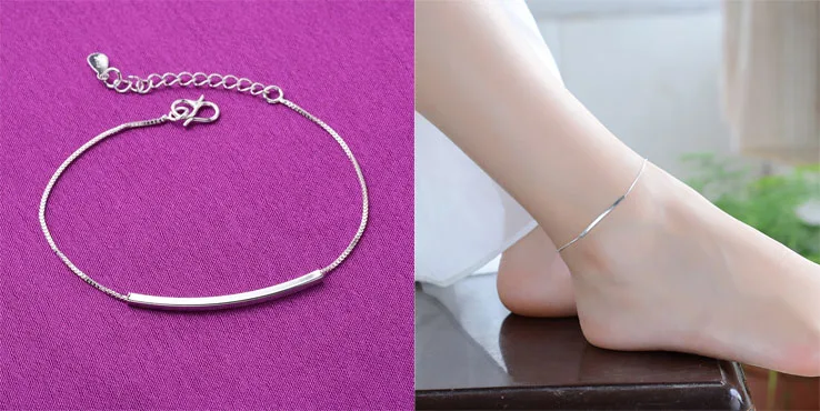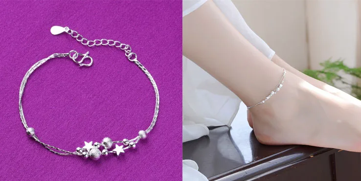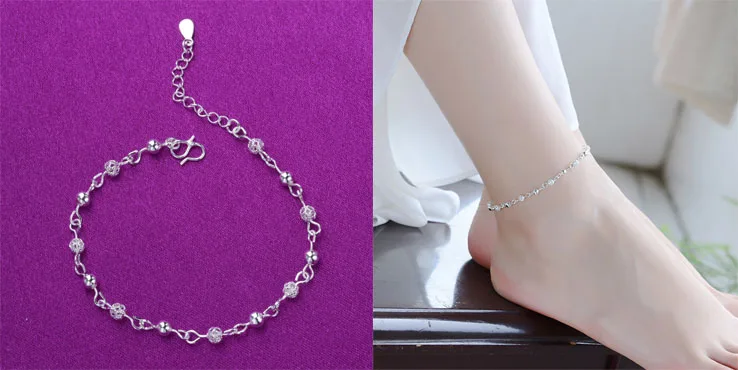 Цепочка на ногу из серебра 925 пробы для женщин и девушек