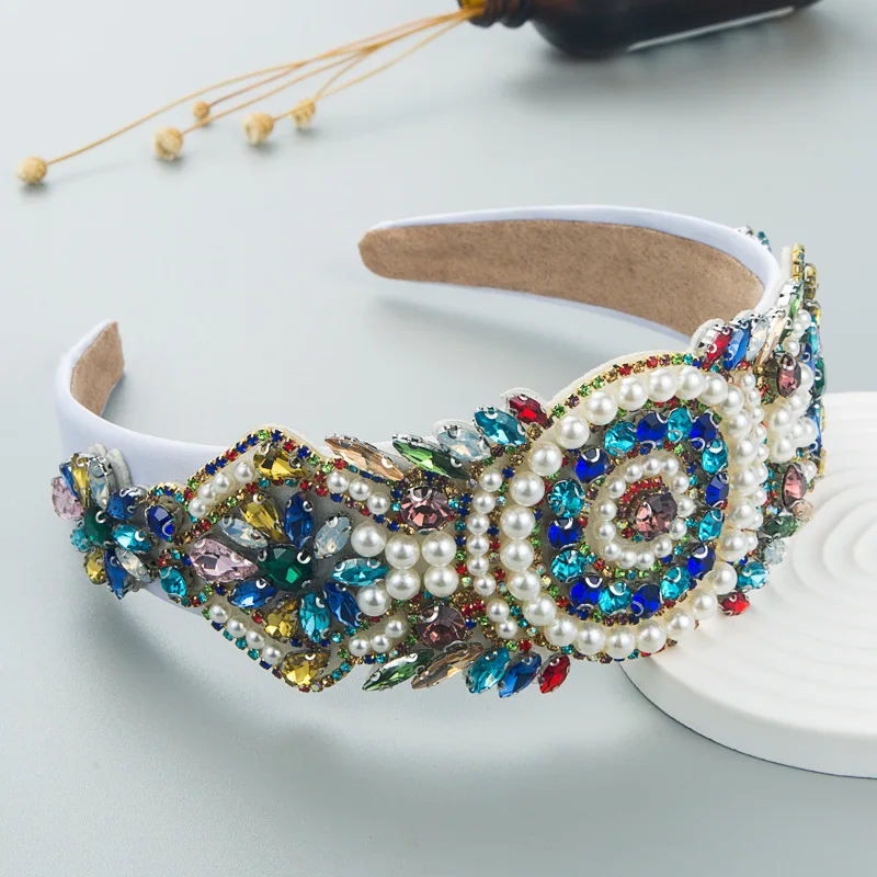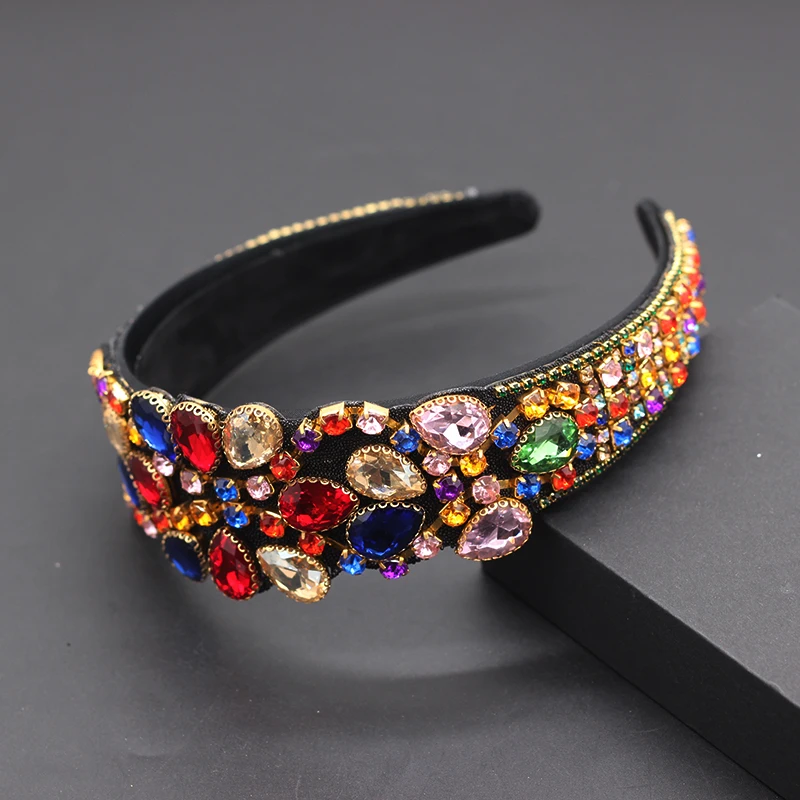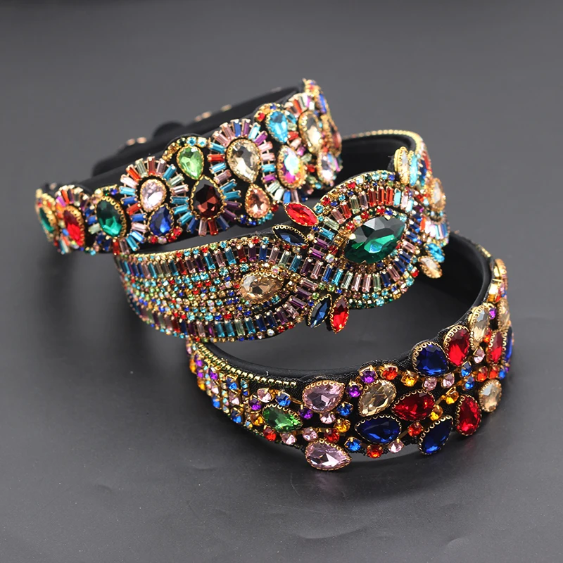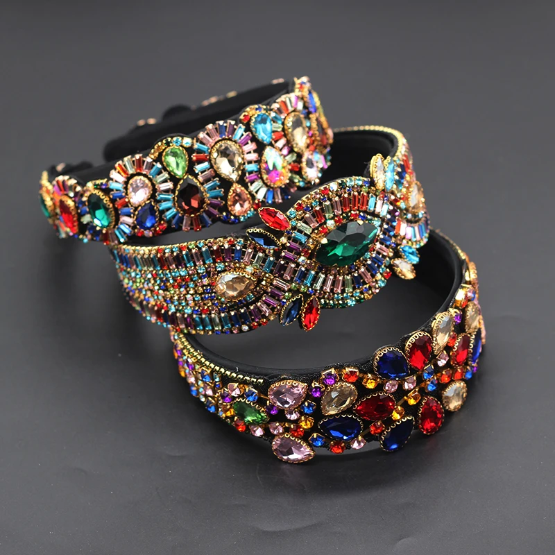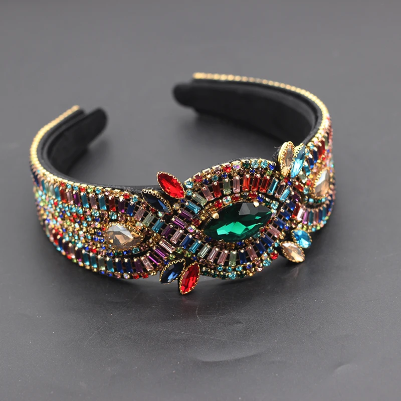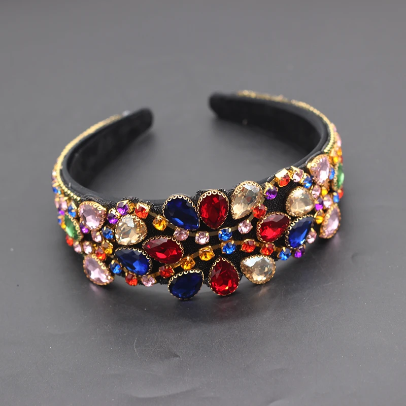 Цветная Цветочная широкополая повязка на голову в стиле барокко модная Роскошная Тяжелая промышленная Изысканная Ретро Повязка На Голову 723