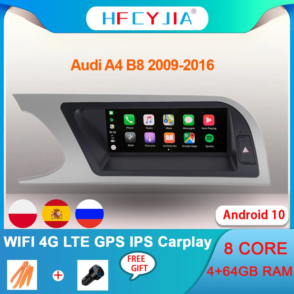 8-ядерный автомобильный стереоприемник Android 10 для Audi A4 2009-2016 4 + 64 Гб ОЗУ Wi-Fi 4G LTE Google BT AUX GPS навигатор Carplay