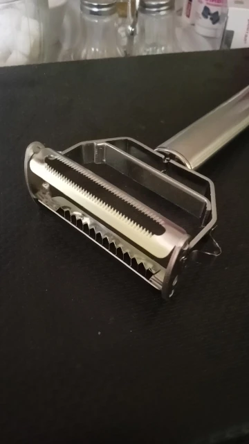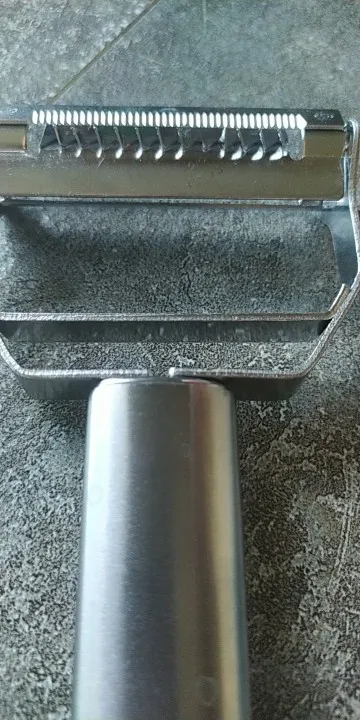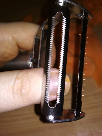 Жена попробовала и через день выкинула... Вроде острая, но соломку из моркови сделать так и не получилось... И, если посильнее надавить, нож из крепления выскакивает.