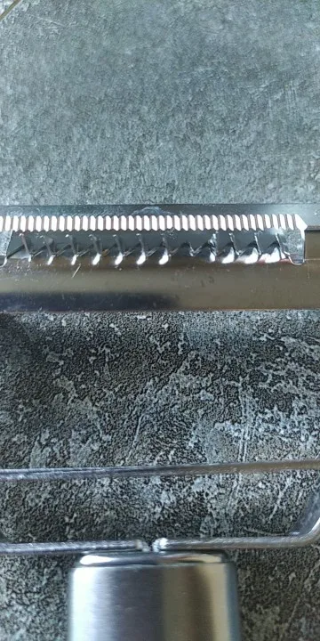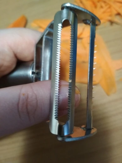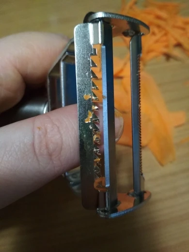 Сделано достаточно качественно и судя по всему достаточно прочно. Пробовал чистить кабачок - нормально. Ломтиками пока что резать было нечего, но шкурку кабачка нарезает полосочками без проблем. Только они не очень толстые из-за небольшой толщины снимаемого слоя.