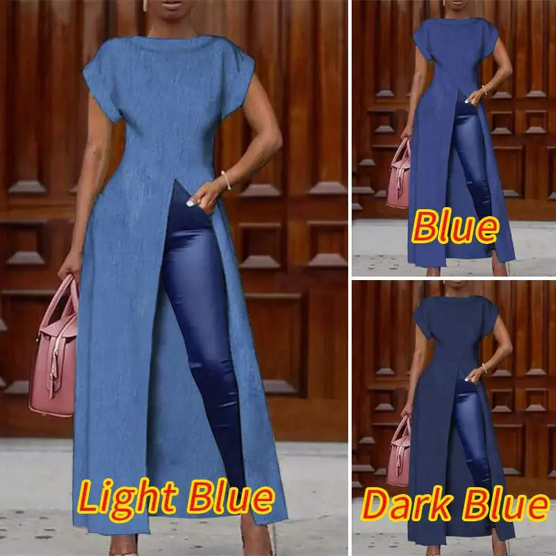 Посылка включает в себя: 1 ТопМатериал: 65% хлопок + 35% полиэстерЦвет: синий, светильник-синий, темно-синийРукав: короткий рукавКарманы: нетРазмер: S,M,L,XL,2XL,Вырез: круглый вырезРисунок: однотонныйОсобенности: сплитСтиль: LiesureСезон: летоПовод: вечерние, праздничные, уличные светло-голубые