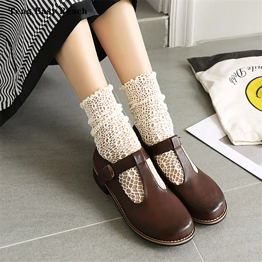 2020 г. Новые модные женские туфли с круглым носком на плоской подошве Мэри Джейн женские туфли на плоской подошве с ремешком на щиколотке с пряжкой 31-48