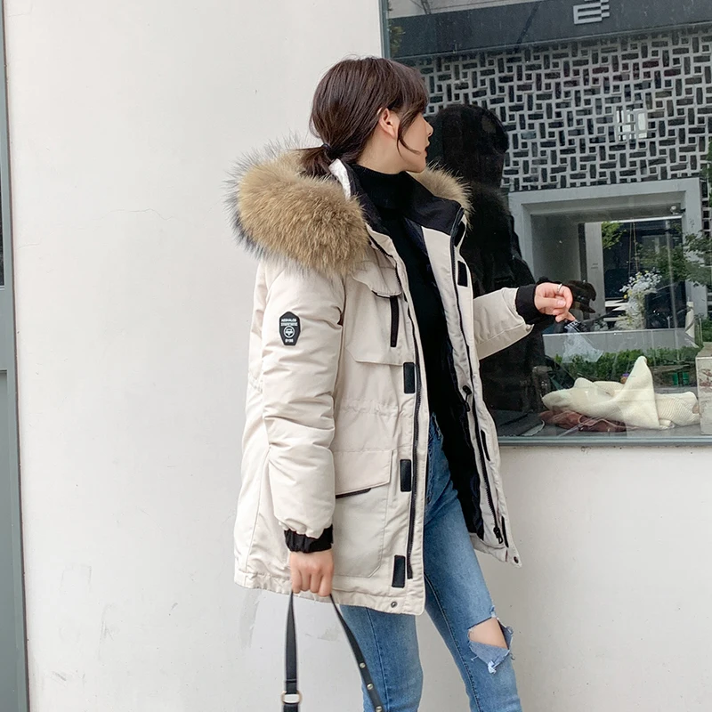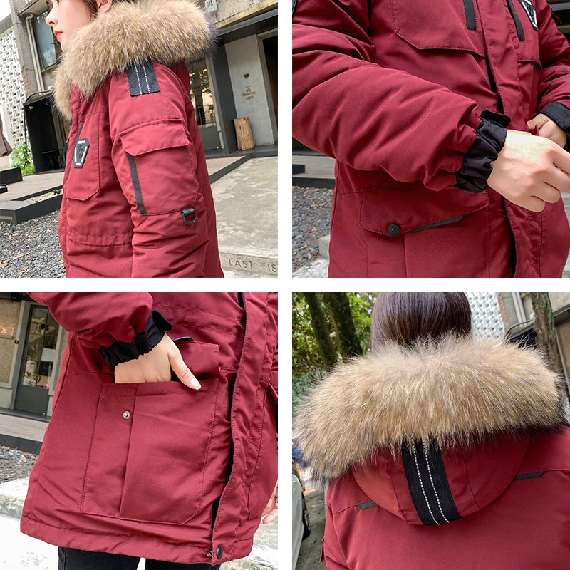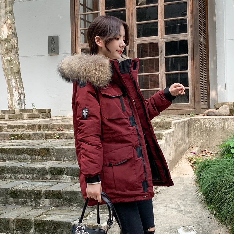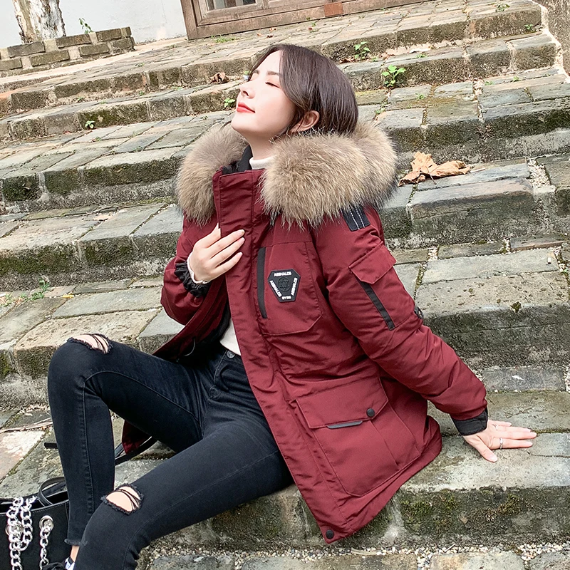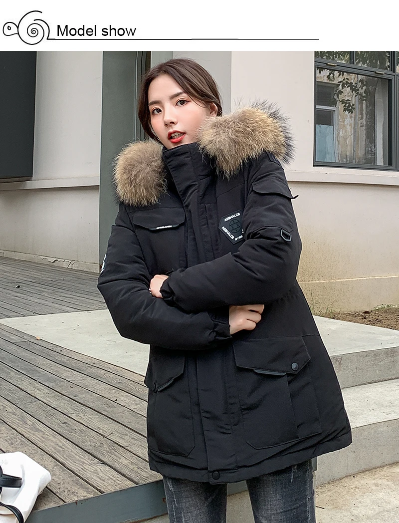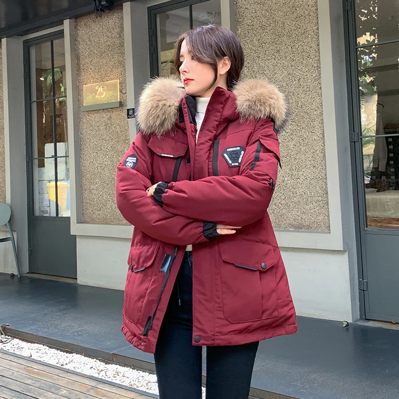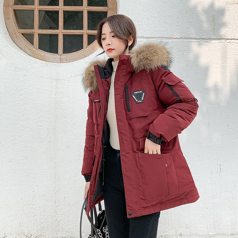 Женские Длинные парки в Корейском стиле, зимняя куртка с капюшоном, плотное хлопковое пальто с меховым воротником и узором, женская одежда