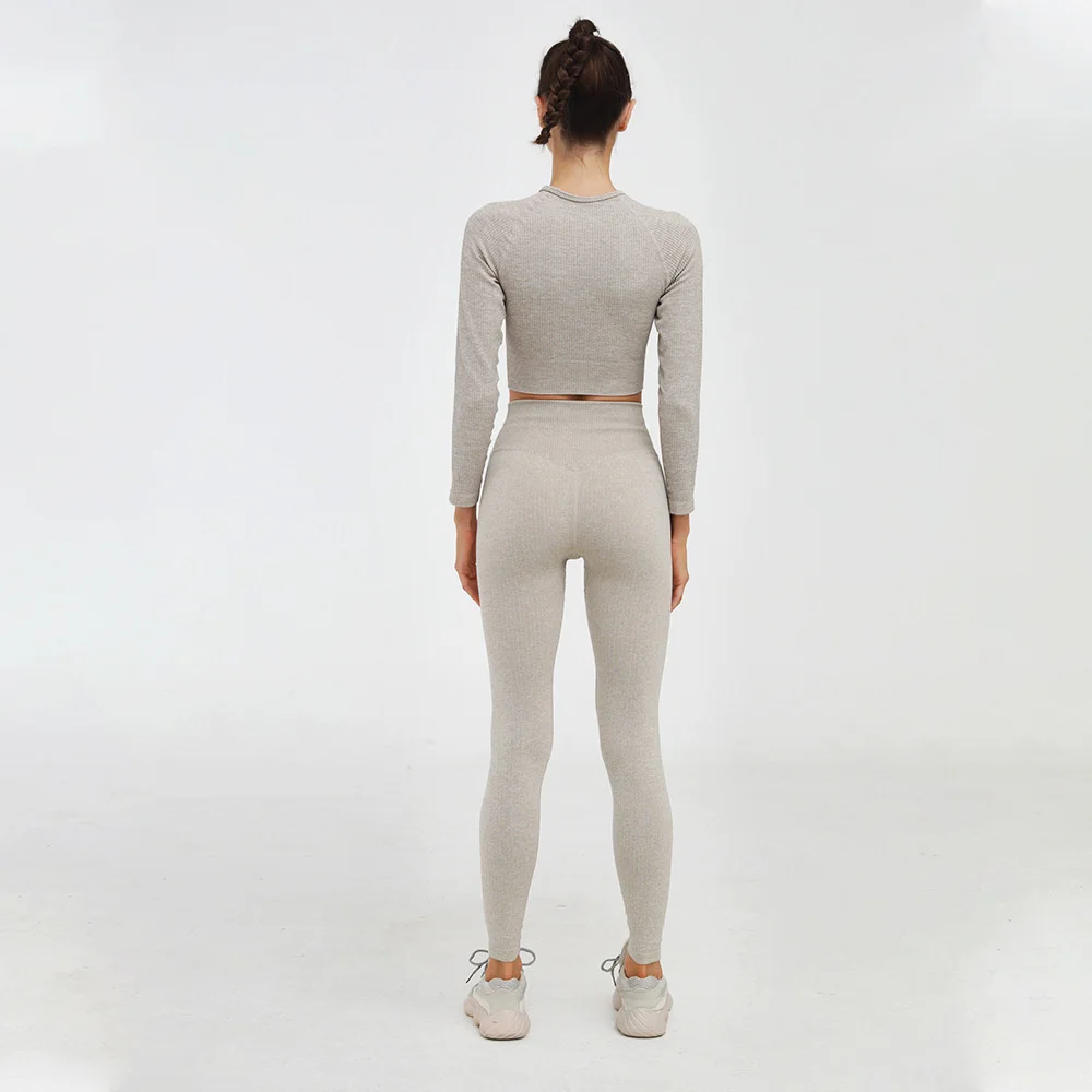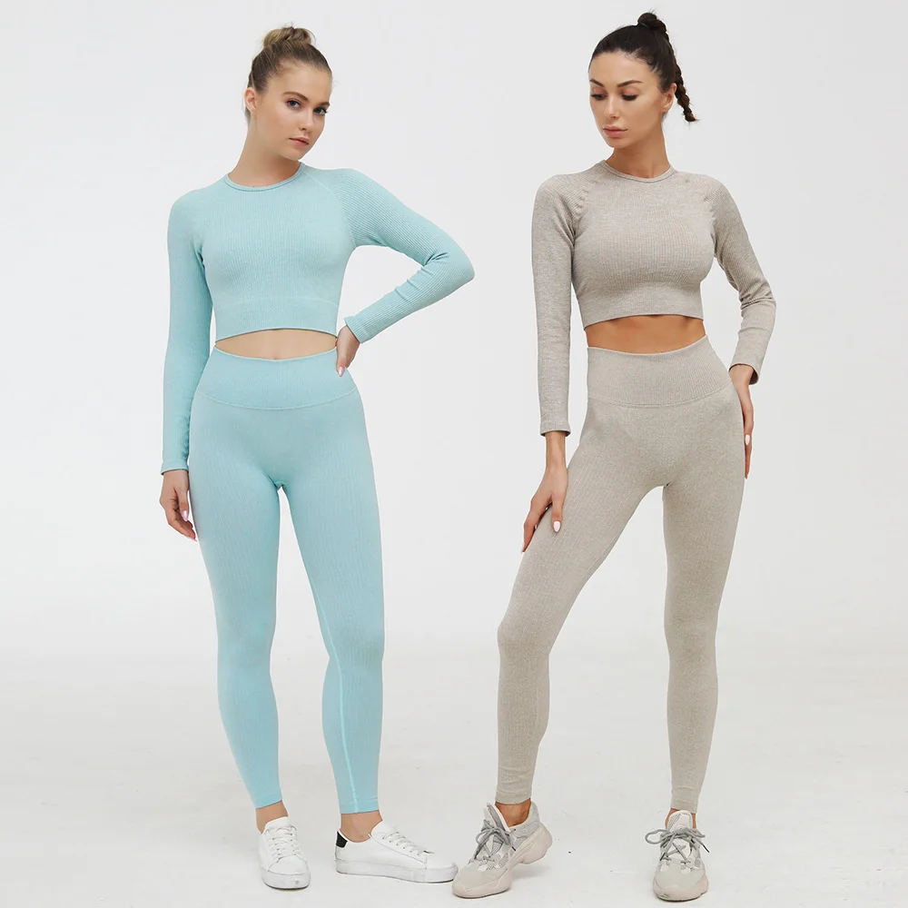 Женский бесшовный комплект для йоги из 2 предметов, ребристый компл...