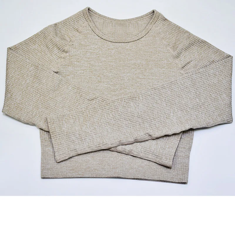 Топ женский для фитнеса, с длинным рукавом и высокой талией, бесшовный