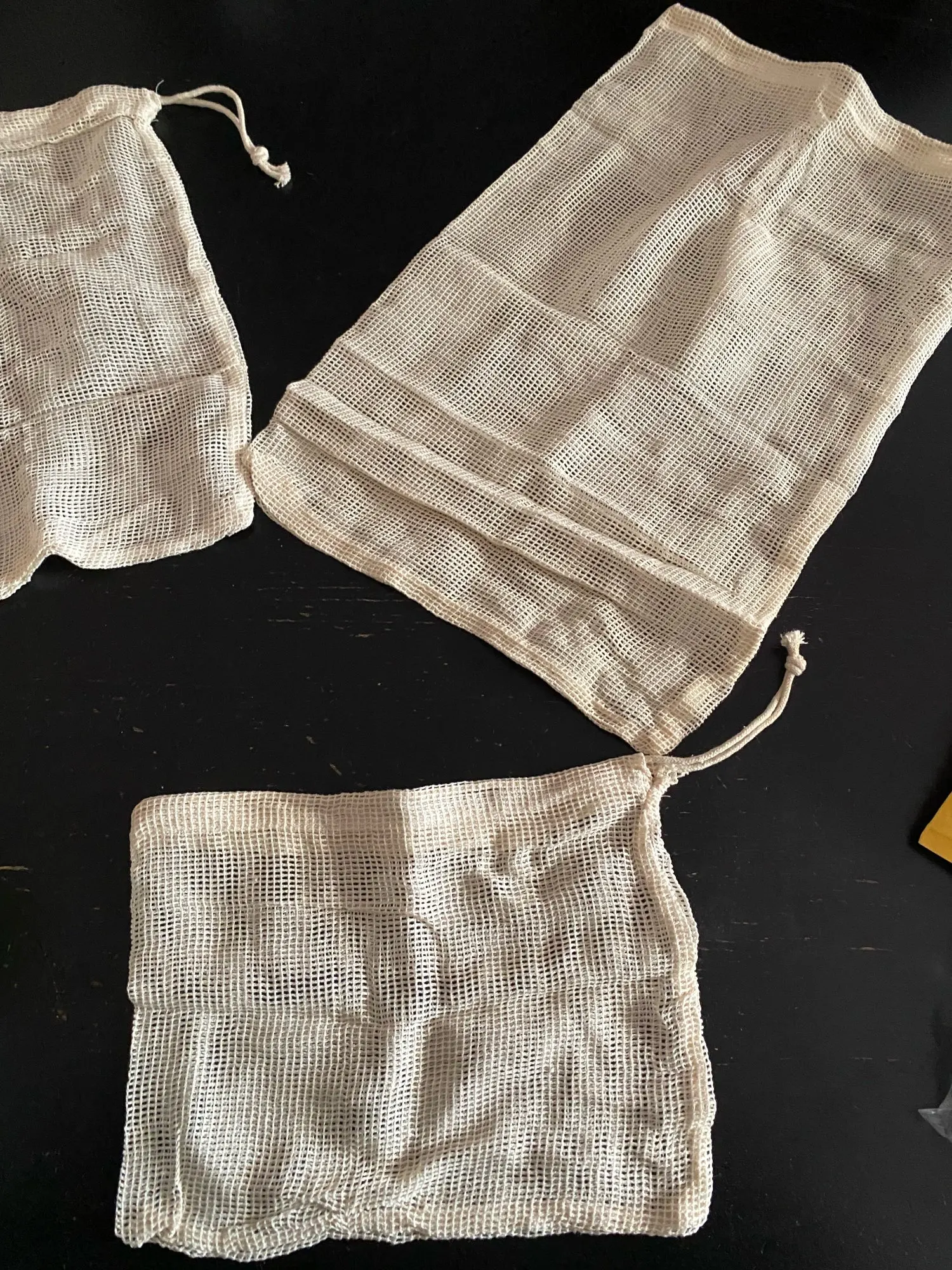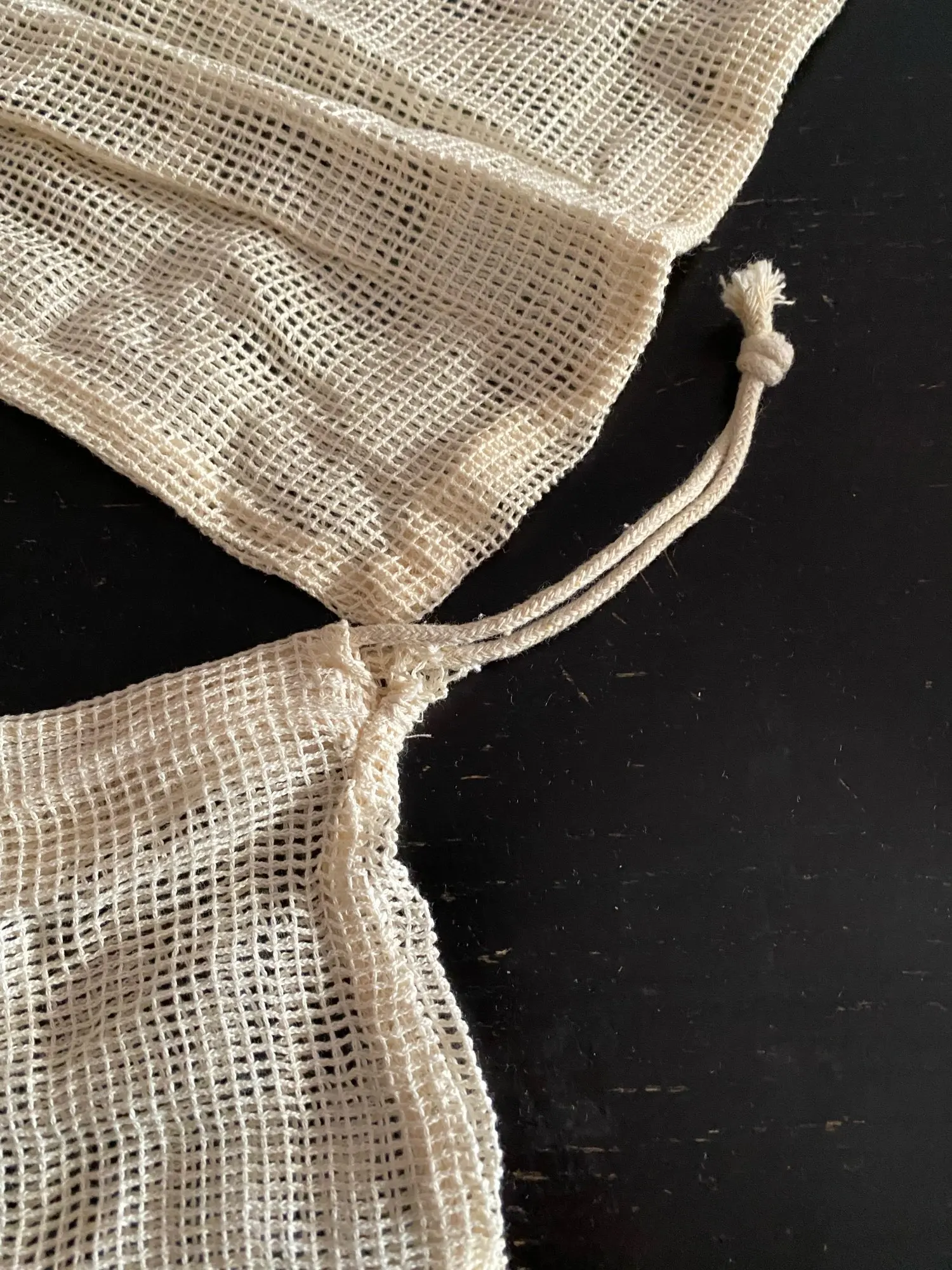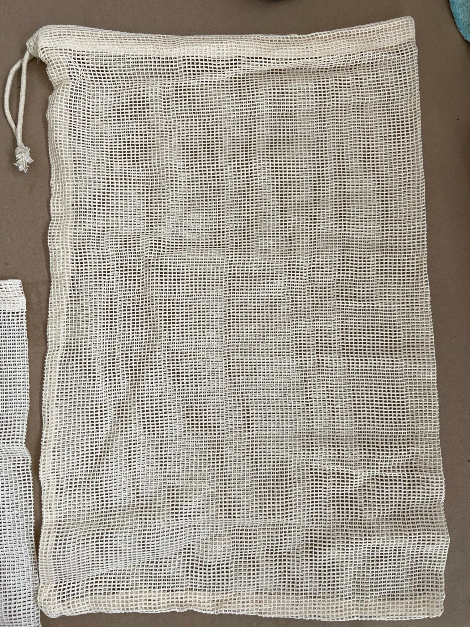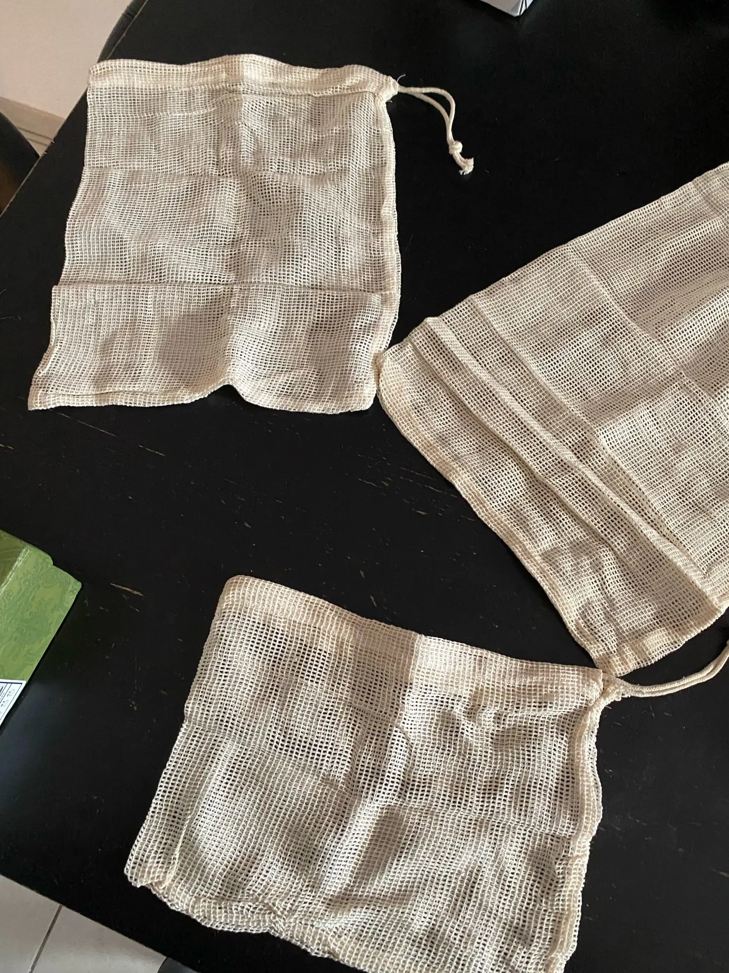 Уже давно хотелось иметь какую-нибудь экологичную альтернативу пластиковым мешочкам, и, вот, наконец-то руки дошли до покупки этих многоразовых мешочков! Всё хорошо, нитки нигде не торчат, приятные на ощупь.