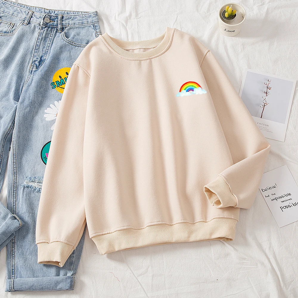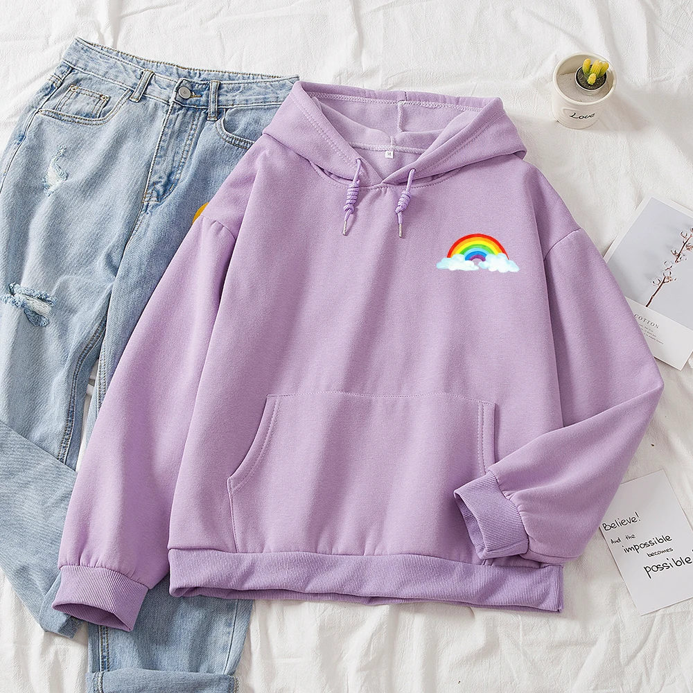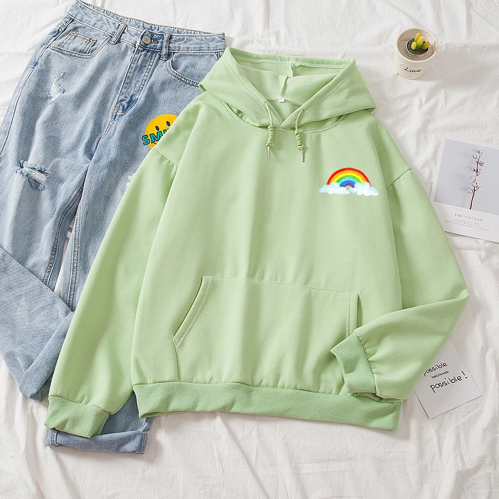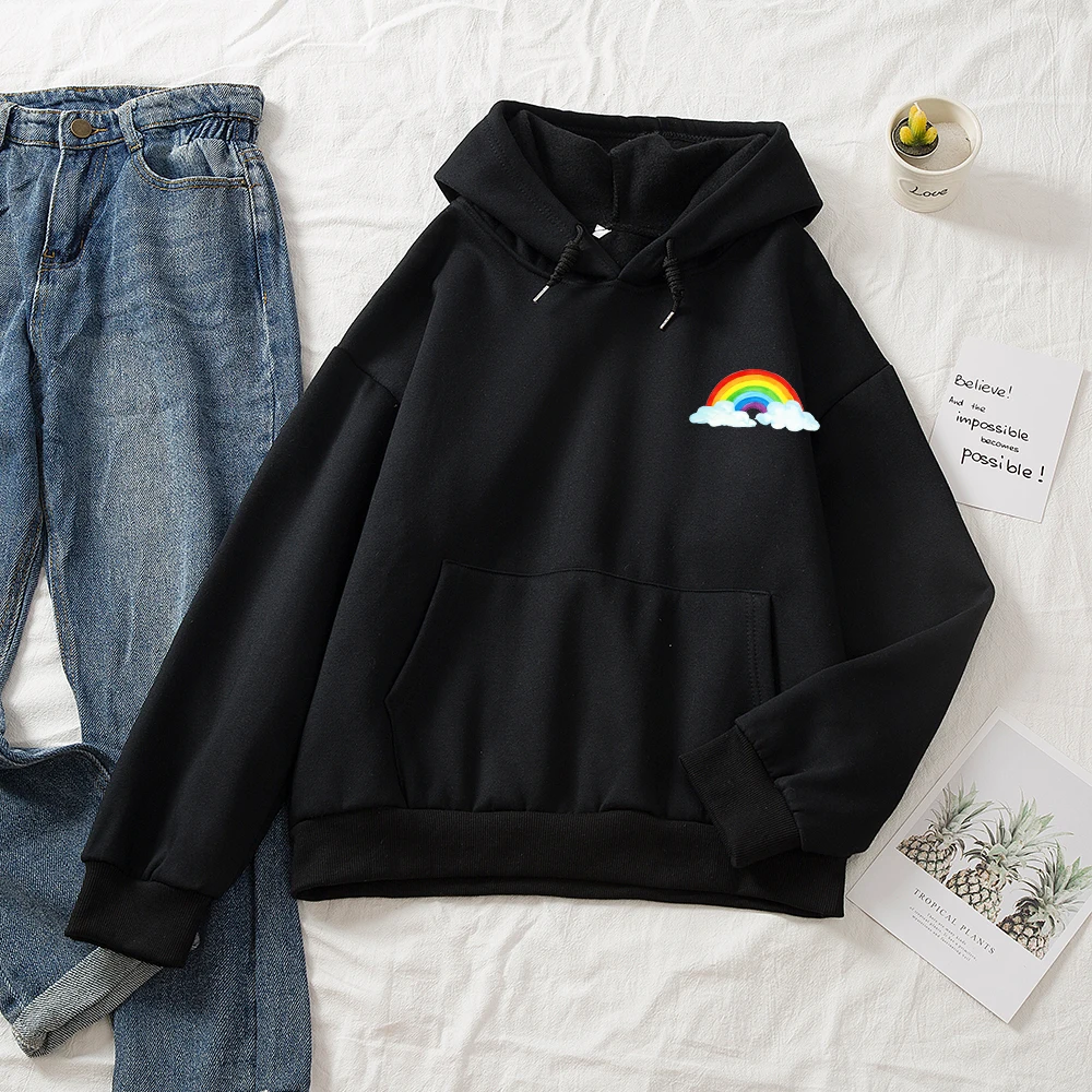 Женская свободная толстовка в Корейском стиле с рисунком радуги Kawaii, уличная одежда с эстетическим принтом, пуловеры для девочек