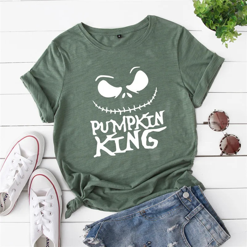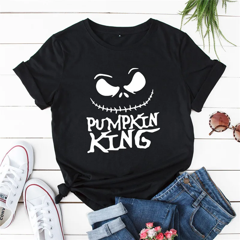 Футболка женская из размера плюс-S-5XL хлопка, с принтом короля тыквы и надписью, с круглым вырезом и коротким рукавом, лето, 100%