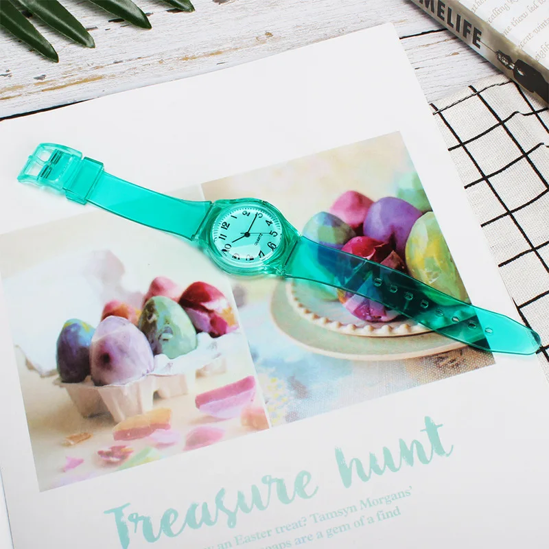 10 шт.лот модная очень теплая верхняя детская одежда для мальчиков и девочек, студентов Прозрачный Простой пластиковый желейные конфеты часы вечерние подарок кварцевые наручные часы